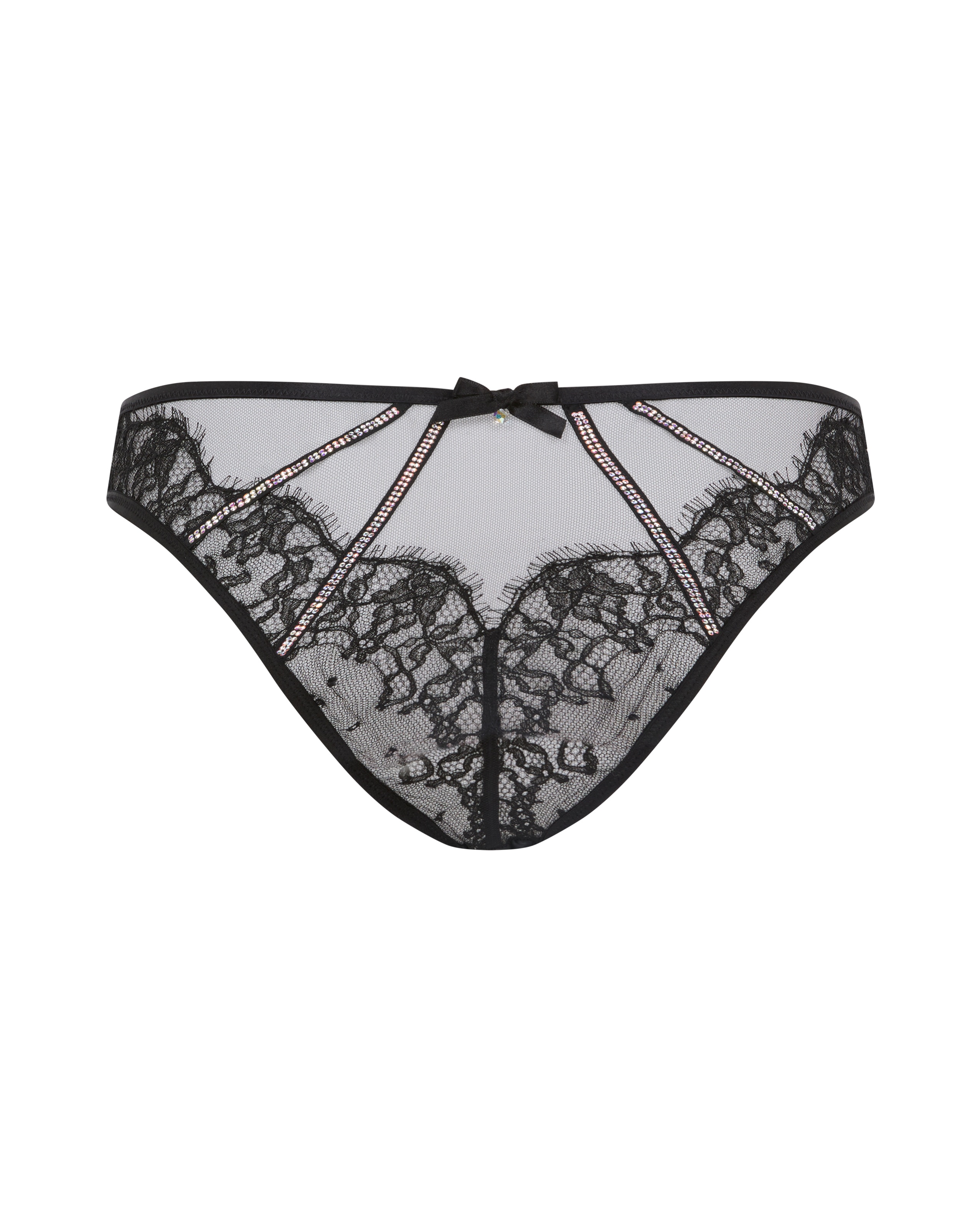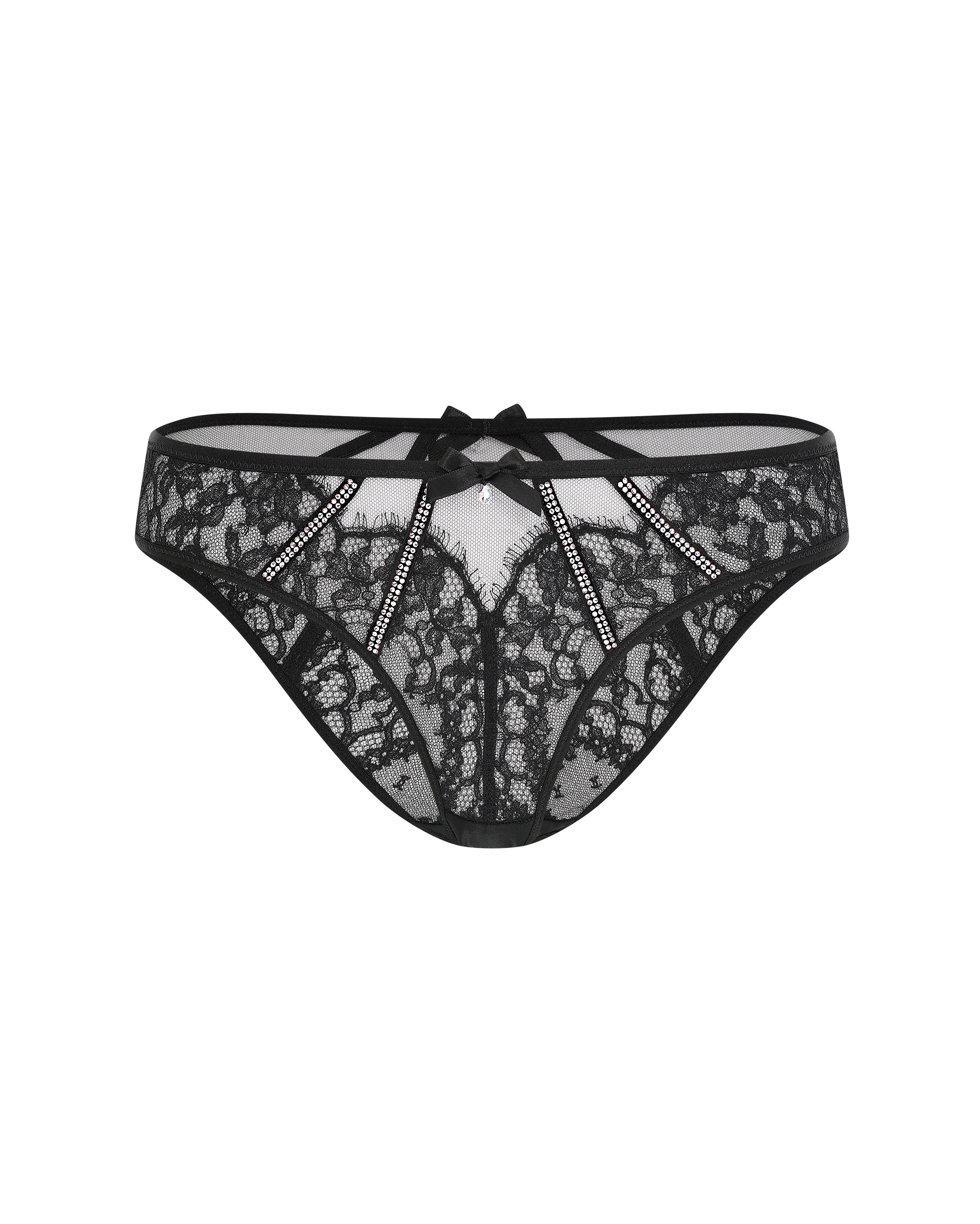 Черные классические трусы Caitriona сочетают итальянскую сетку и элегантные вставки из французского кружева Leavers. Дополняют дизайн шелковые детали с кристаллами aurora borealis и украшения Swarovski® спереди и сзади. В комплекте с другими изделиями коллекции Caitriona образ будет по-настоящему впечатляющим.