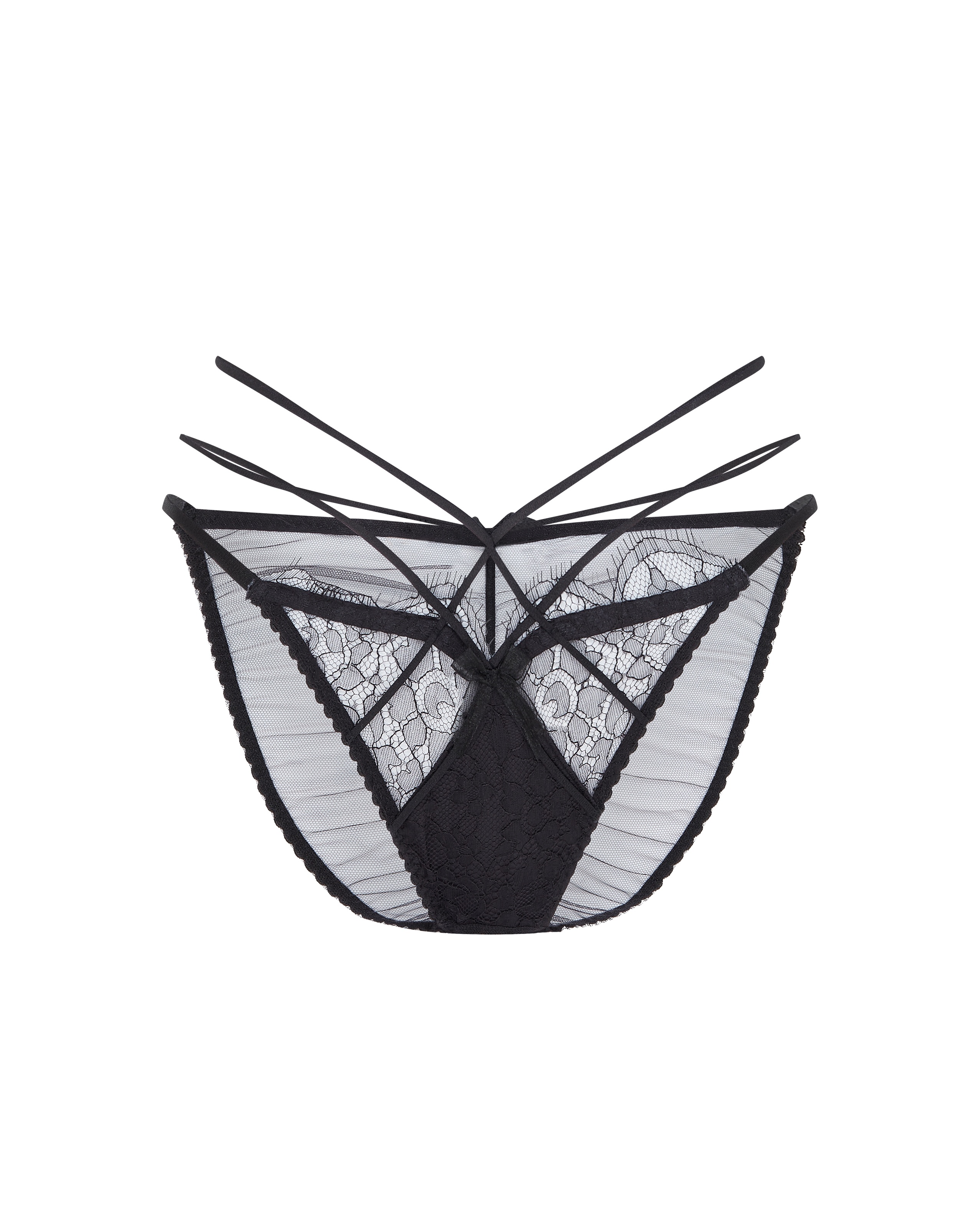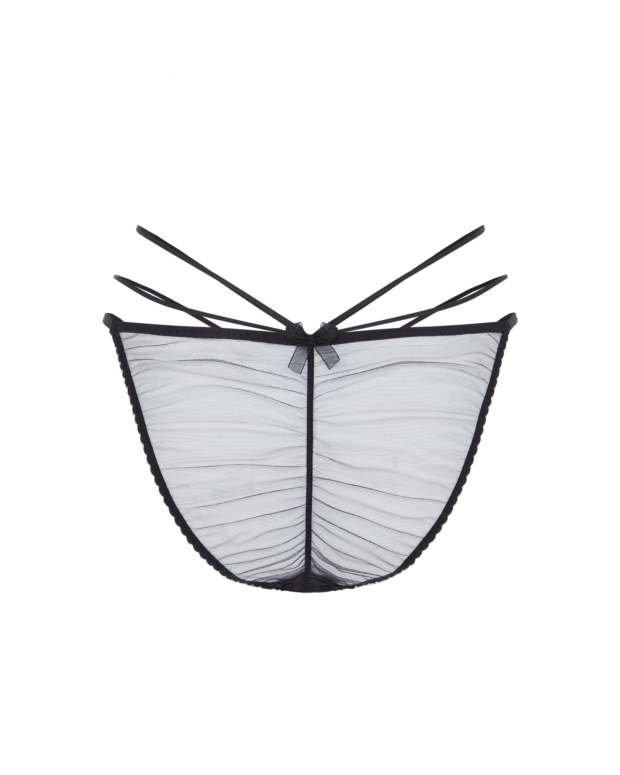 Трусы-брифы Halley черного цвета выполнены из ажурного кружева на атласной основе спереди. Прозрачный тюль сзади с игривой сборкой и атласный рулик по бедрам создают завершенный образ. Соберите весь комплект Halley для создания безупречной гармонии.
