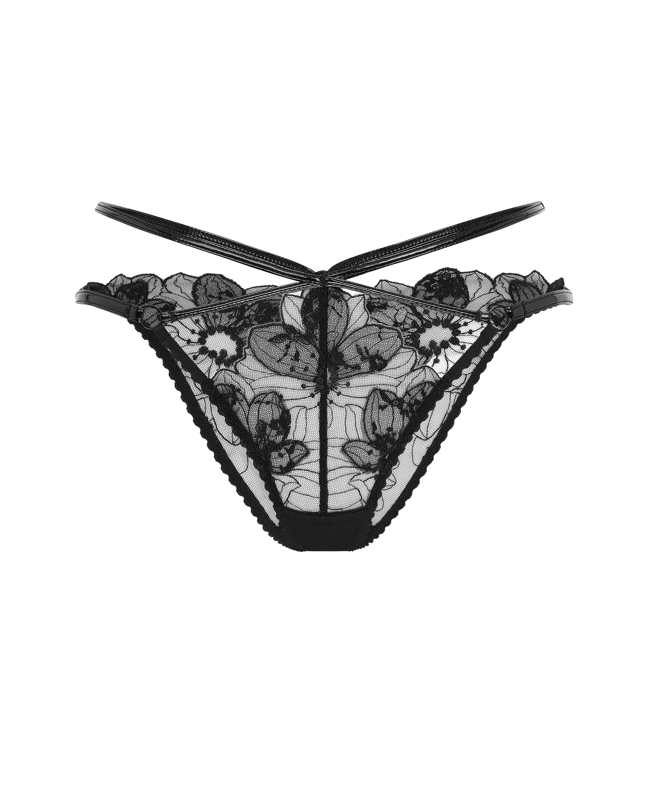 Черные трусы Litzia — это сочетание прозрачного тюля с вышивкой и ремешками, которые подчеркивают силуэт. Дополните комплект другими вещами из коллекции для эффектного и смелого образа.