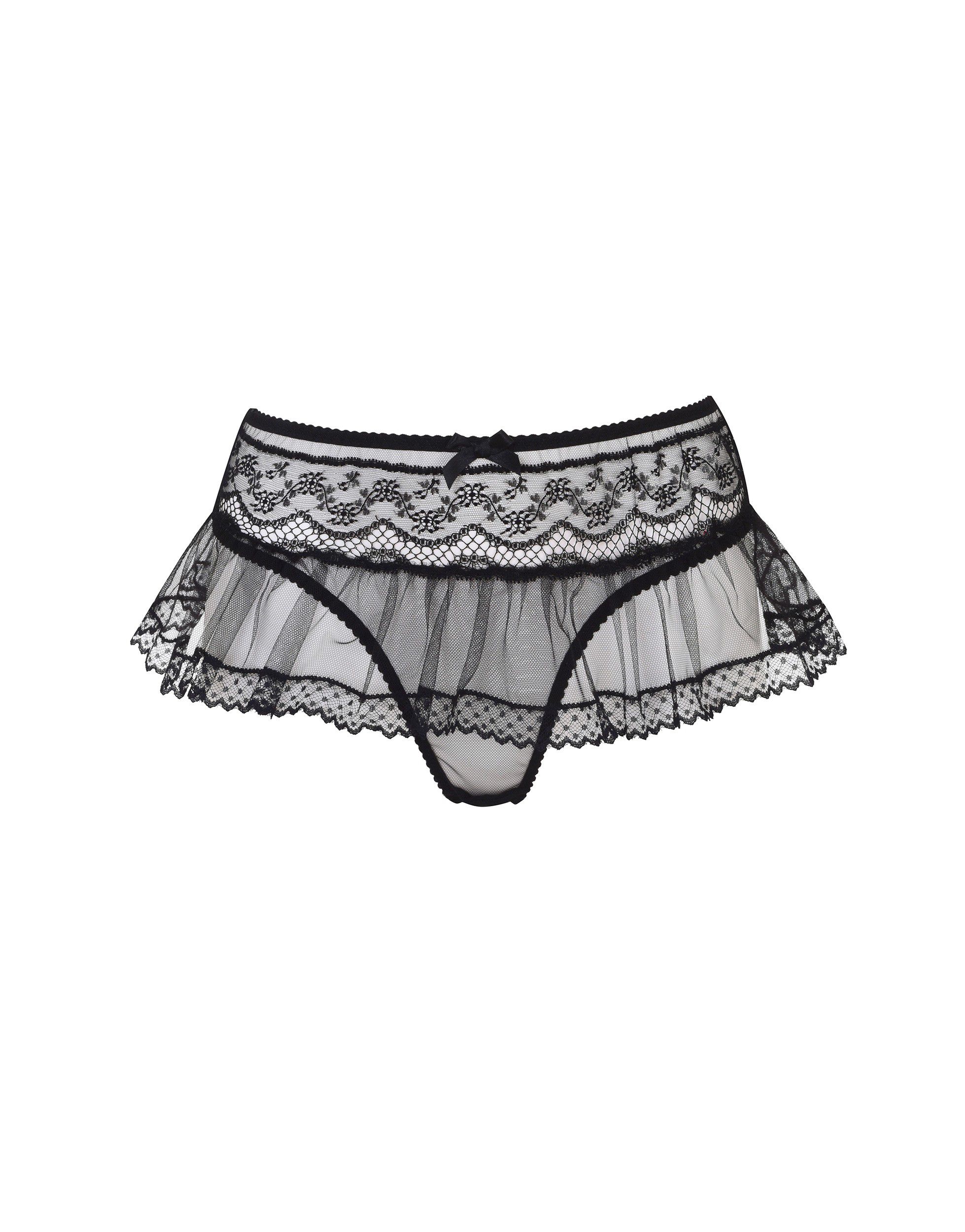 Вдохновленный эстетикой Дикого Запада, эти трусики дополнят соблазнительный сет с поясом и бюстгальтером Austin. Для этой модели дизайнеры выбрали тончайшую черную сетку и декор в виде кружевных тесемок. Трусики на средней посадке украшены насборенной баской и окантованы эластичными резинками по краям.