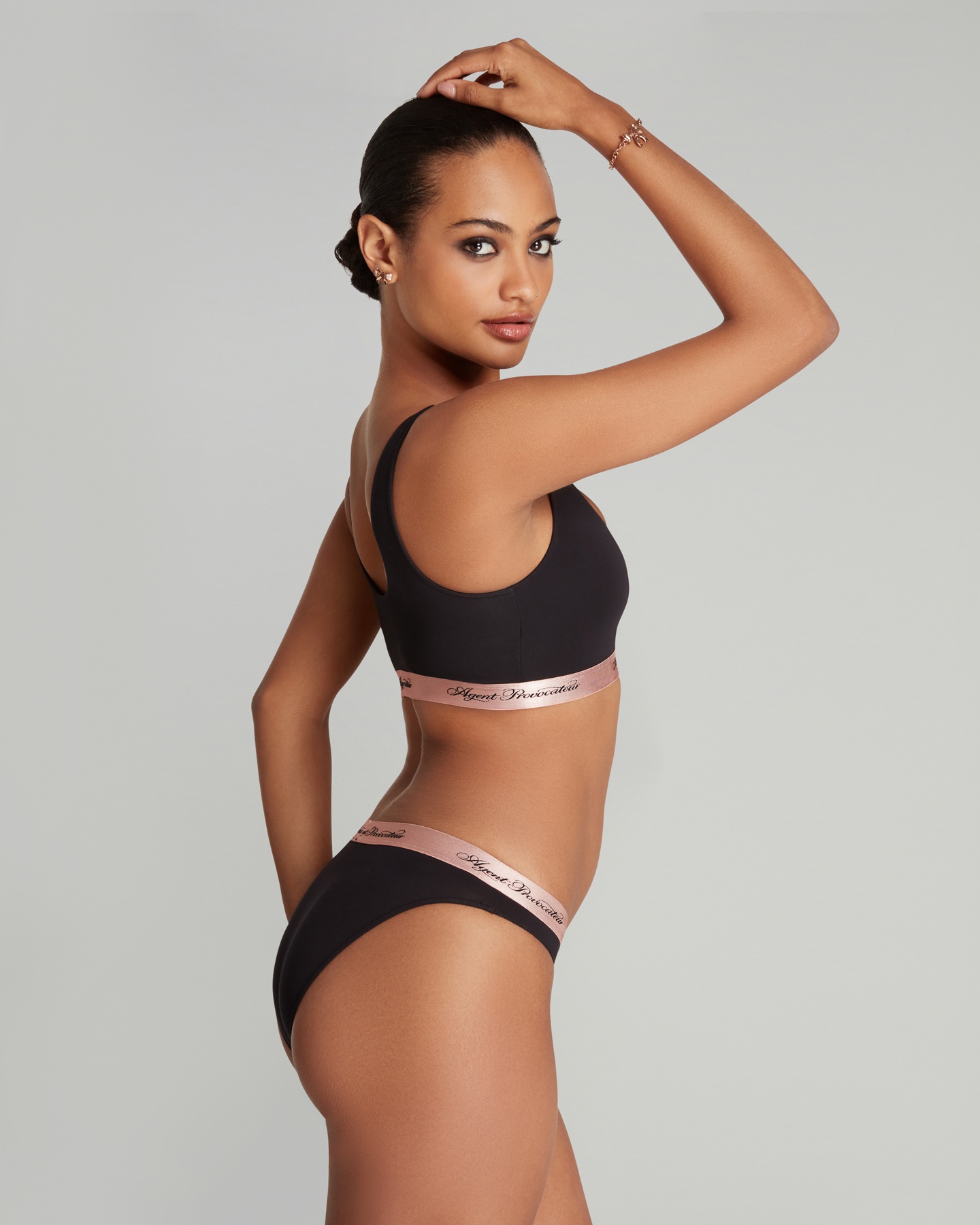 Черные классические трусы Clea: модальная ткань, розовая лента с лого AP на талии. Дополните образ бралетом Cleа для комфорта и стиля.