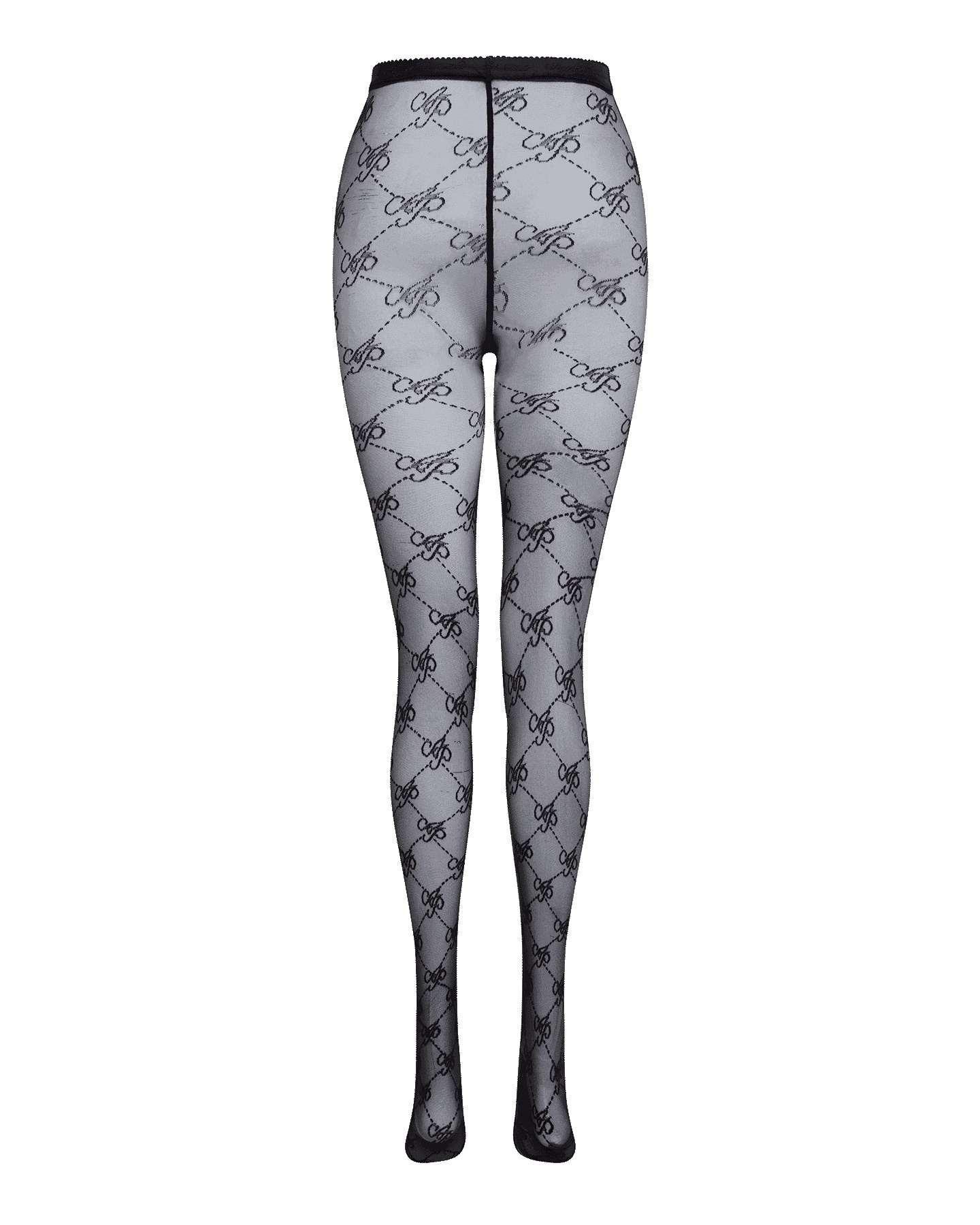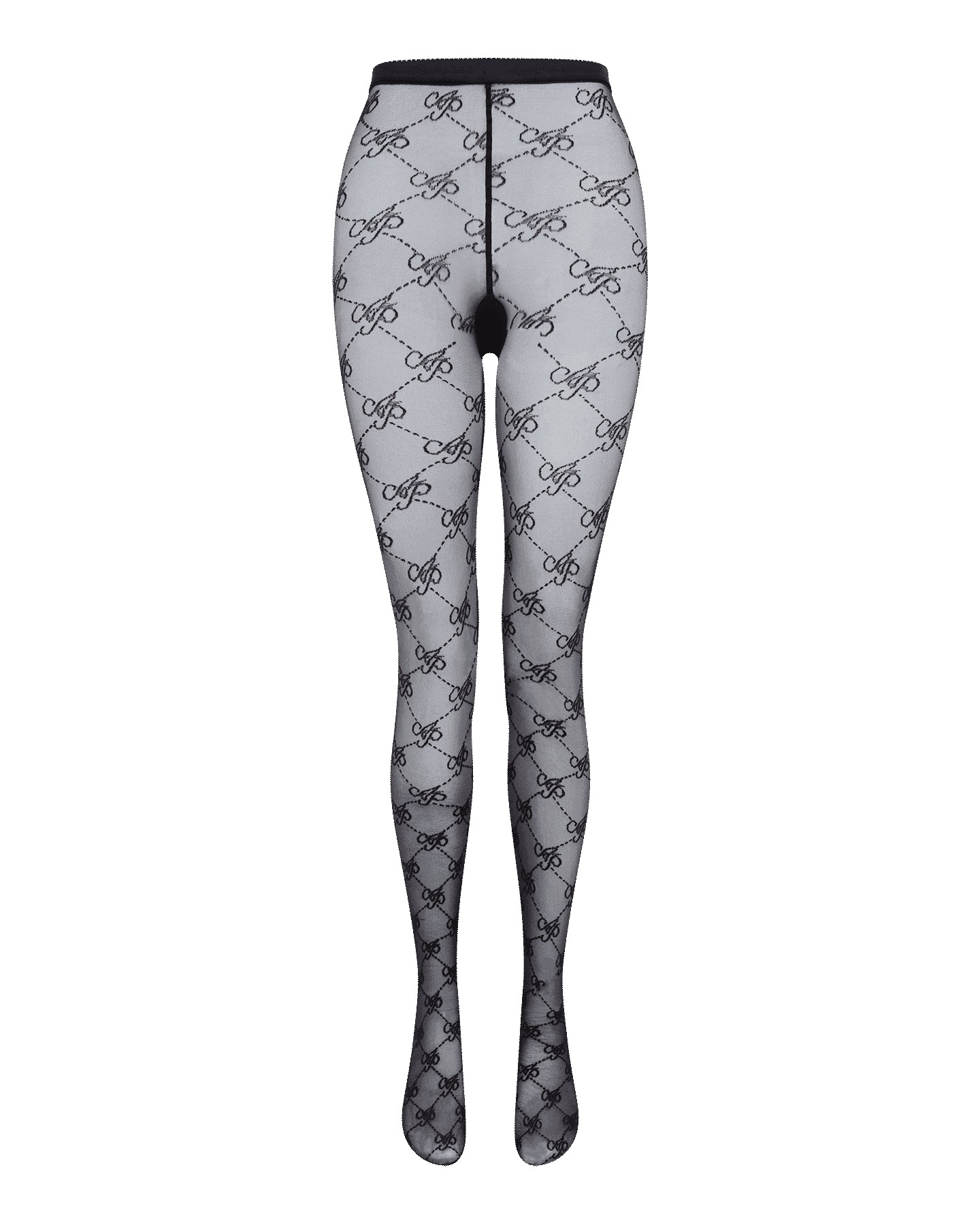 Колготки AP Diamond черного цвета отличаются тонким рисунком в виде аббревиатуры АР. Элегантный акцент для повседневных или вечерних образов.