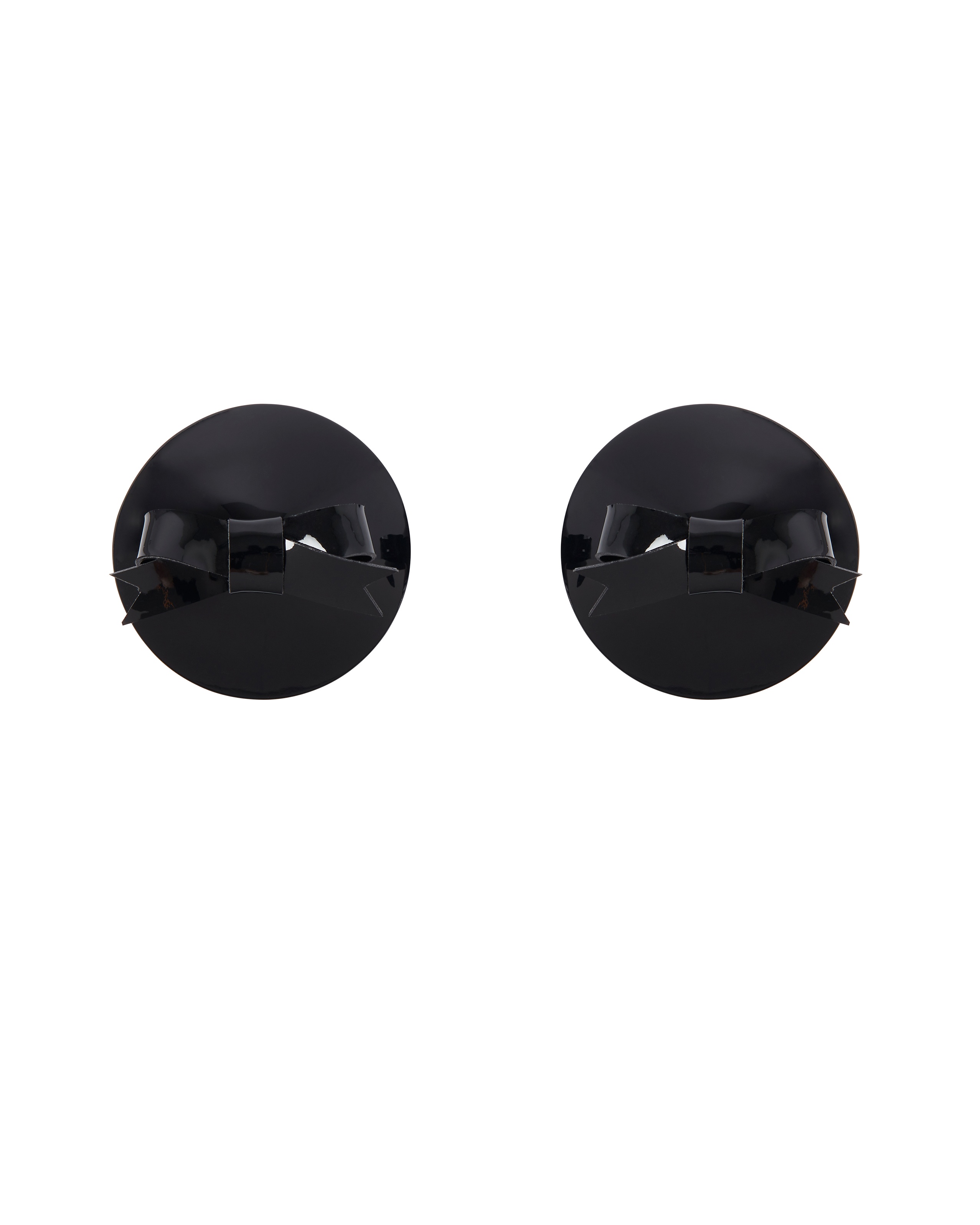 Накладки Brina черного цвета из глянцевого плексигласа с бантами. В комплекте 2 набора клеящихся стикеров. Игривое дополнение к коллекции Brina.