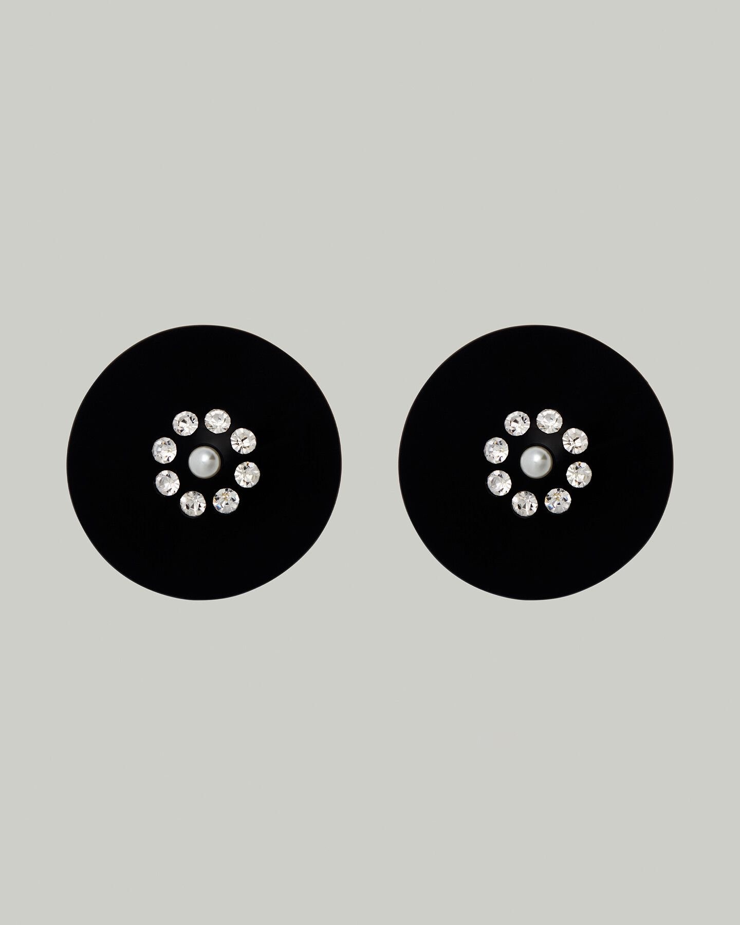 В коллекции Mako представлены черные накладки с жемчужным центром, окруженным прозрачными кристаллами, и глянцевым покрытием. В комплект входят два набора клейких стикеров. Сочетайте с комбинезоном Mako для создания смелого и игривого вечернего образа.