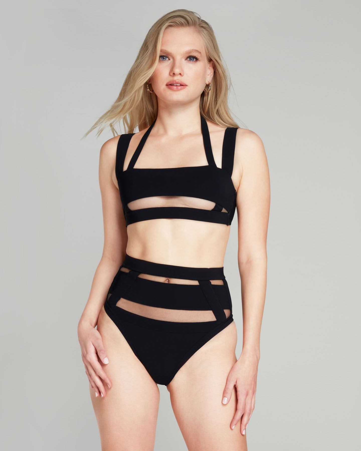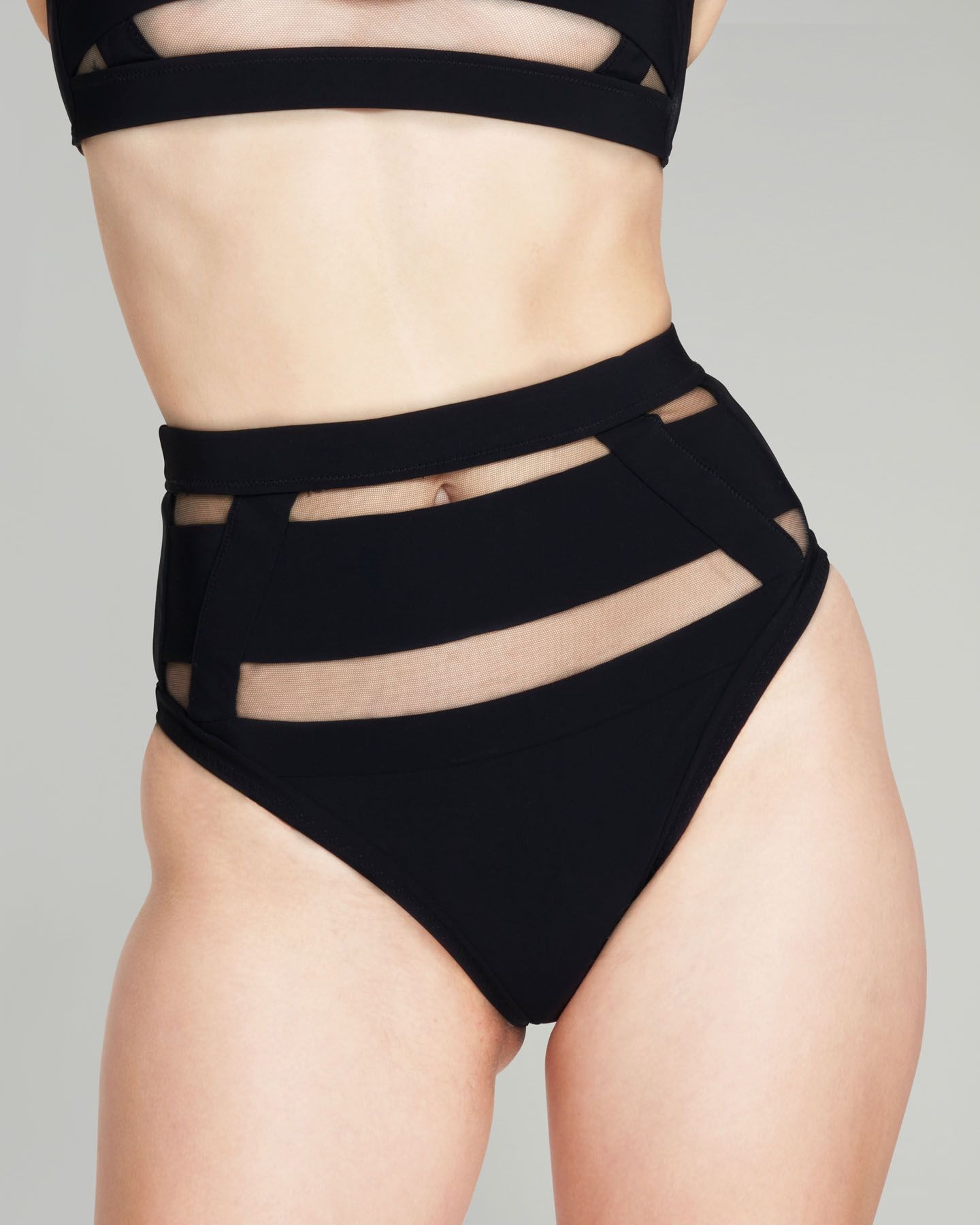 Черные плавки Fynlee с высокой талией и панелями вдохновлены дизайном нижнего белья. Оснащены вставками из сетки для дополнительной поддержки. Идеально сочетаются с топом бикини из этой же серии, создавая завершенный образ.