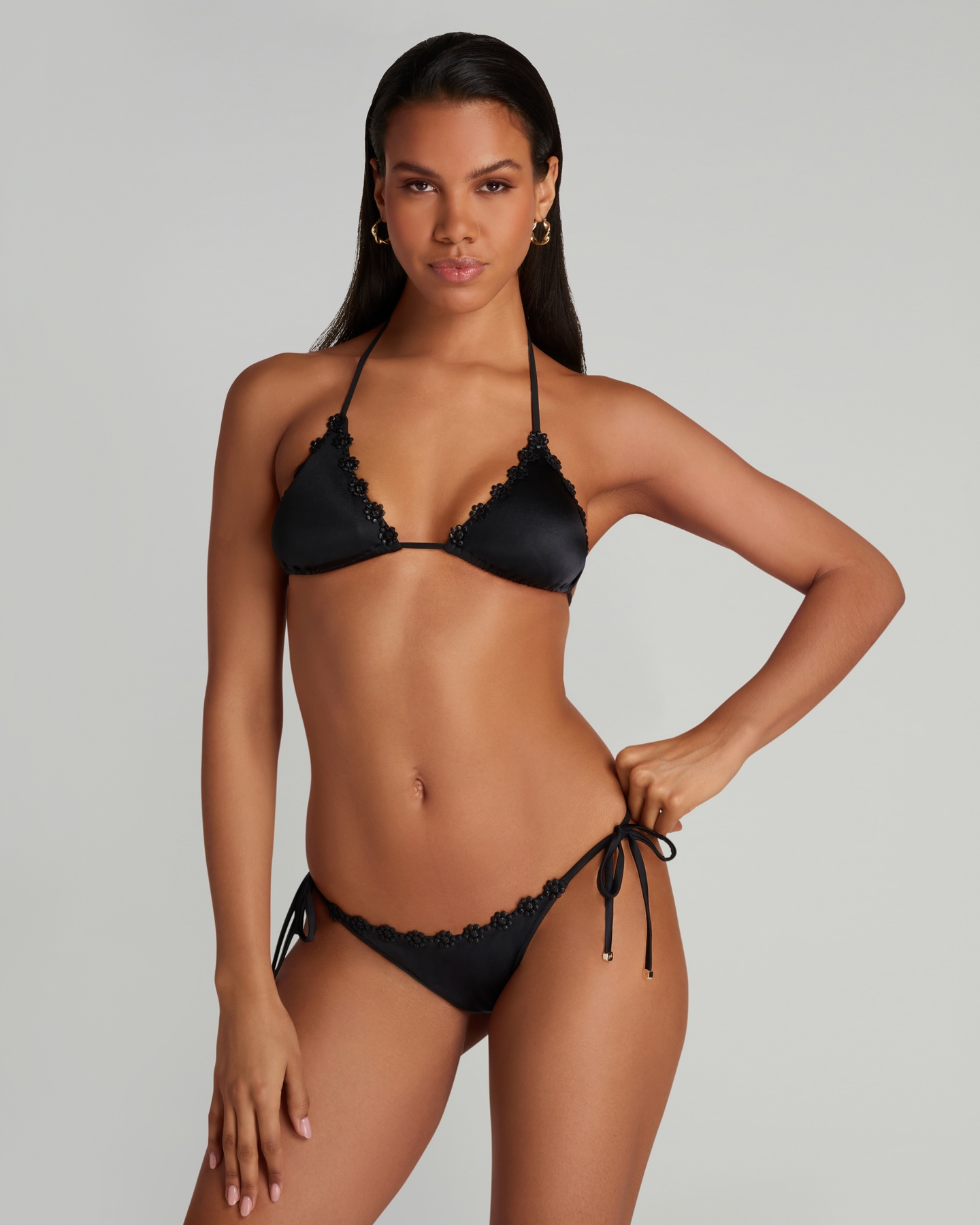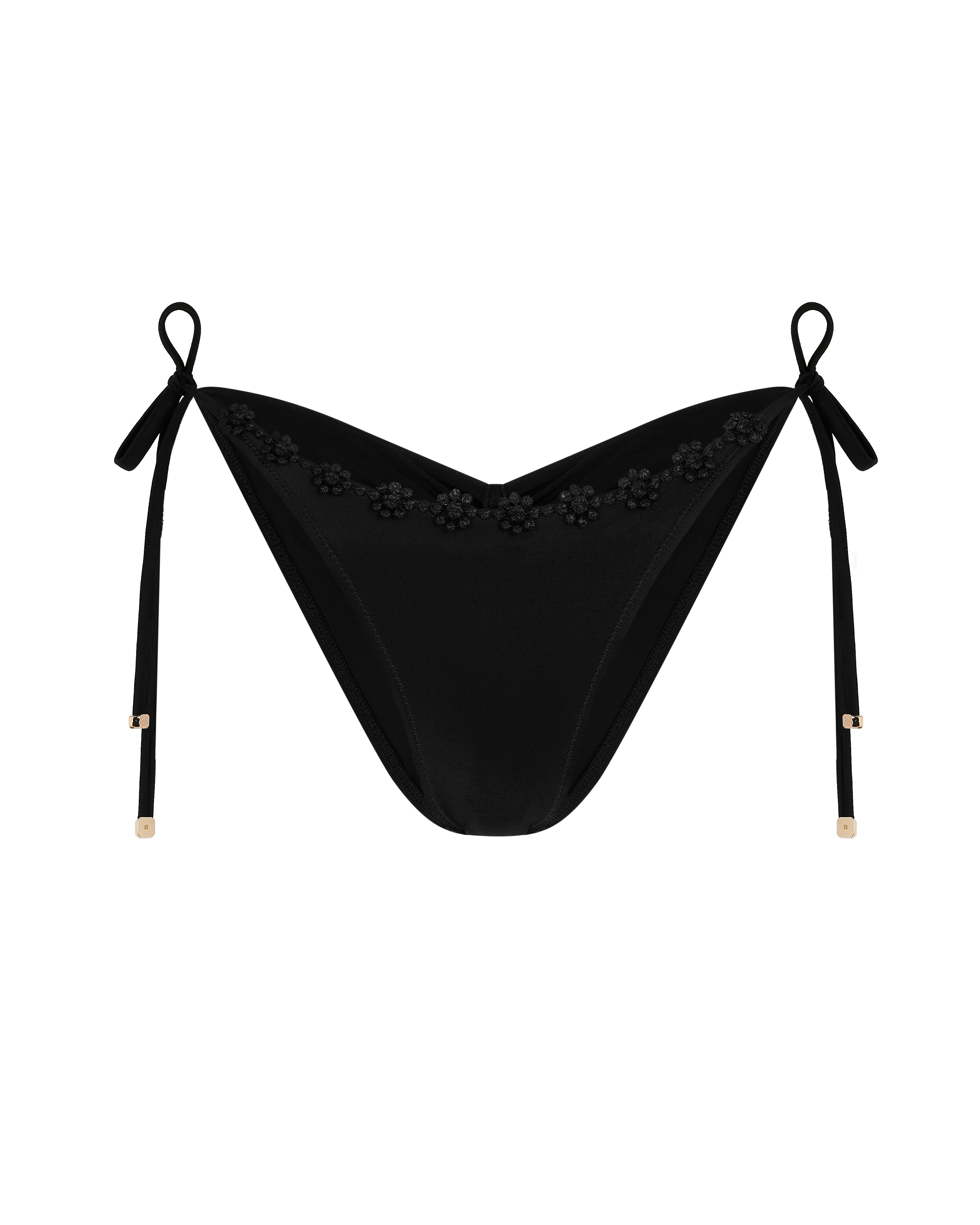 Плавки Maiya с изящной отделкой французским гипюром, завязками руло и регулируемой сборкой сзади подчёркивают формы. Сочетайте их с топом из этой коллекции для создания стильного летнего образа.