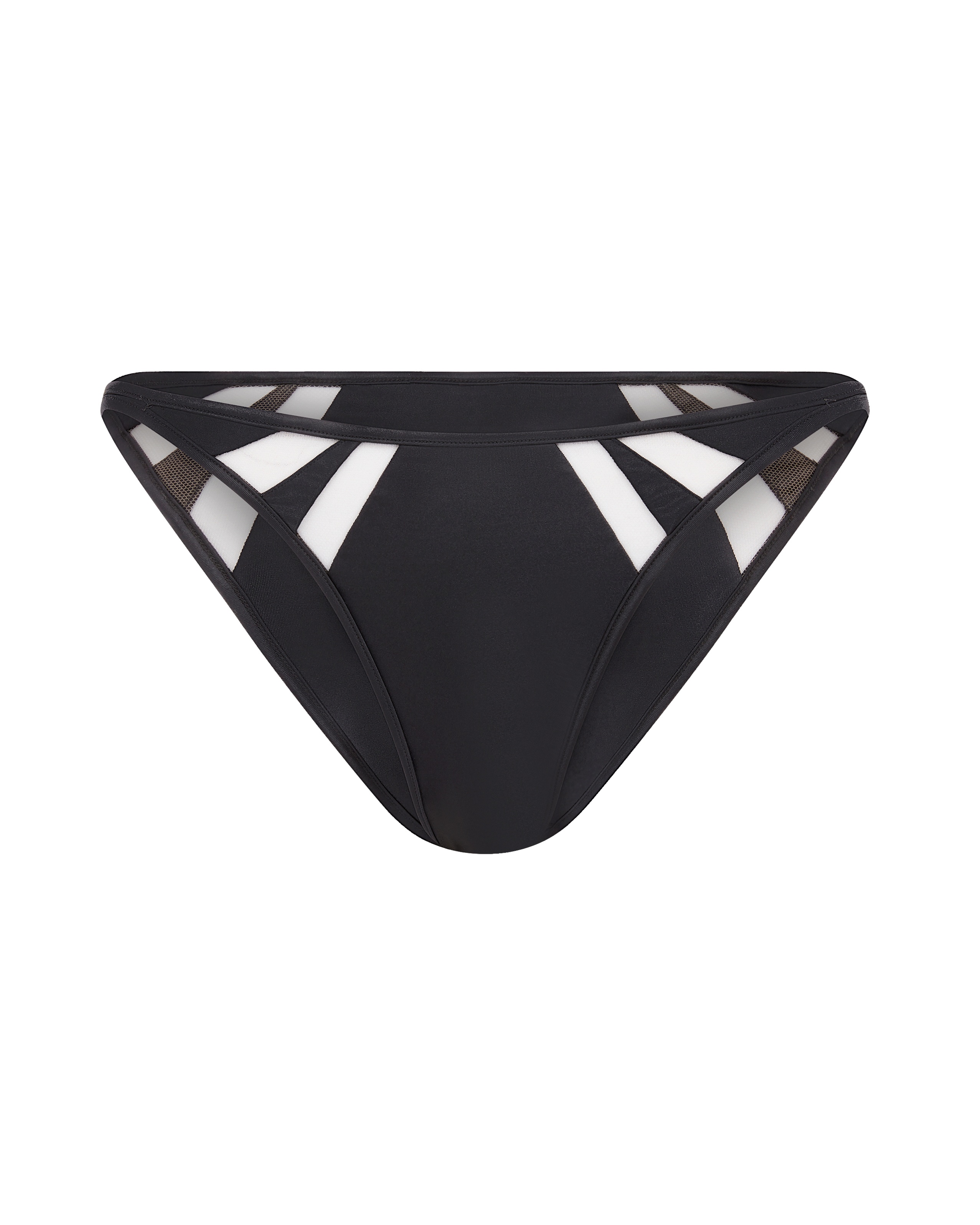 Черные плавки из коллекции Tora изготовлены из эластичной ткани для плавания, которая обеспечивает идеальную посадку и комфорт. Модель с узким задним вырезом и низкой посадкой подчеркивает формы и создает соблазнительный образ. Плавки украшены панелями из прозрачного тюля, а завершают образ аппликации в форме стрелы. Носите с соответствующим верхом Tora.