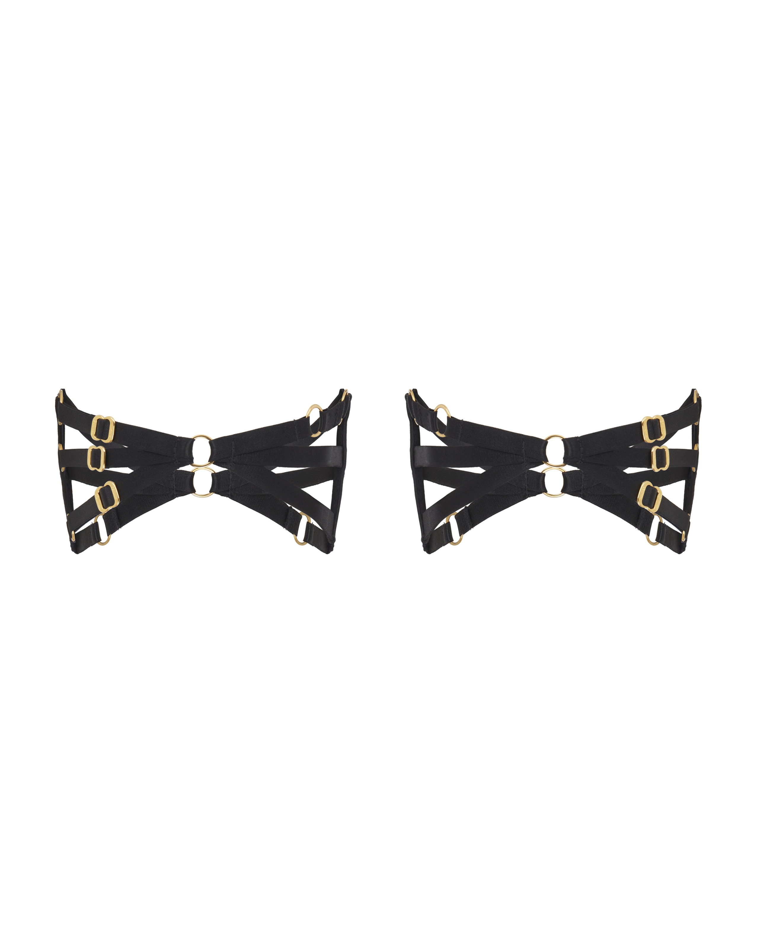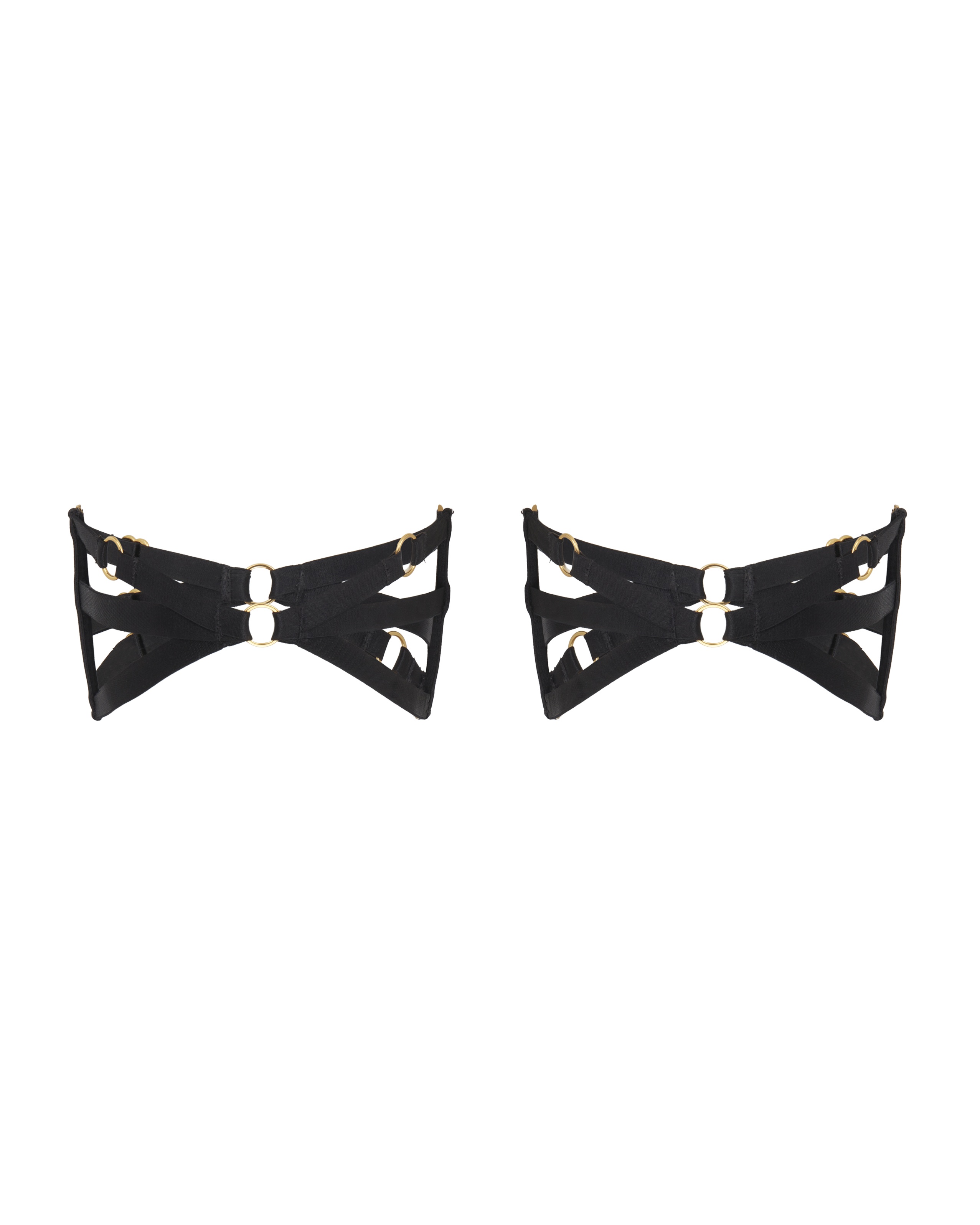 Набор Dioni состоит из двух подвязок черного цвета. Три кольца спереди и сзади служат для крепления к поясу для чулок. Прекрасное дополнение к образу в бондажном стиле.