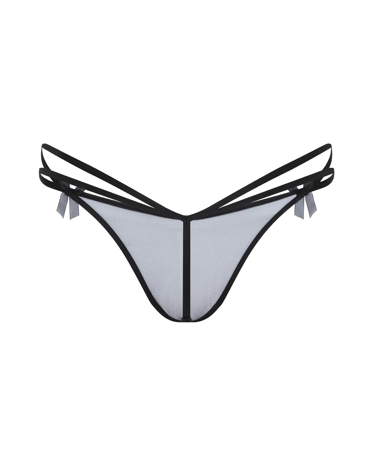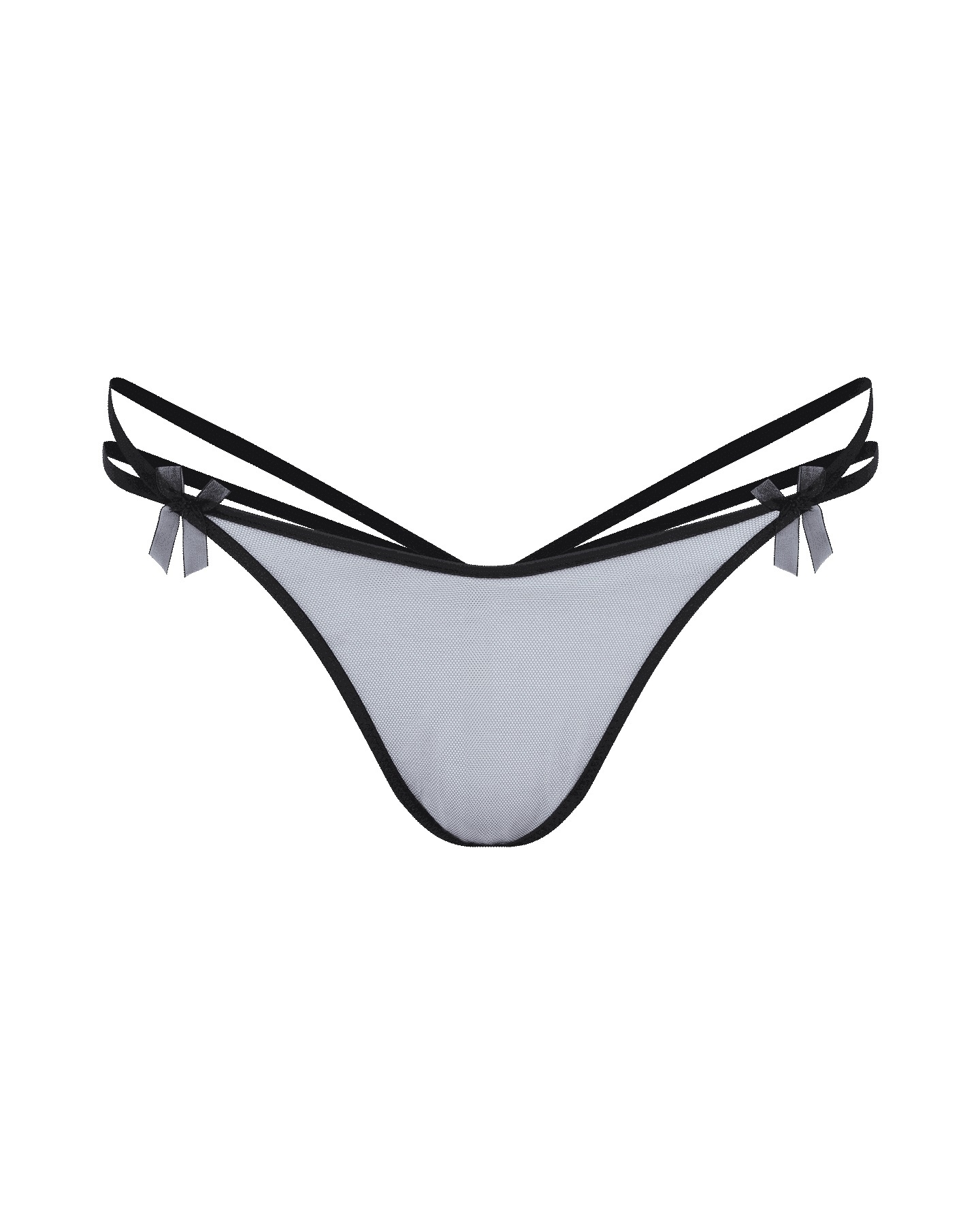 Трусы-стринги Buffie выполнены из прозрачного тюля с изящными бретелями и пикантным вырезом сзади. Маленькие банты из органзы добавляют игривый акцент.