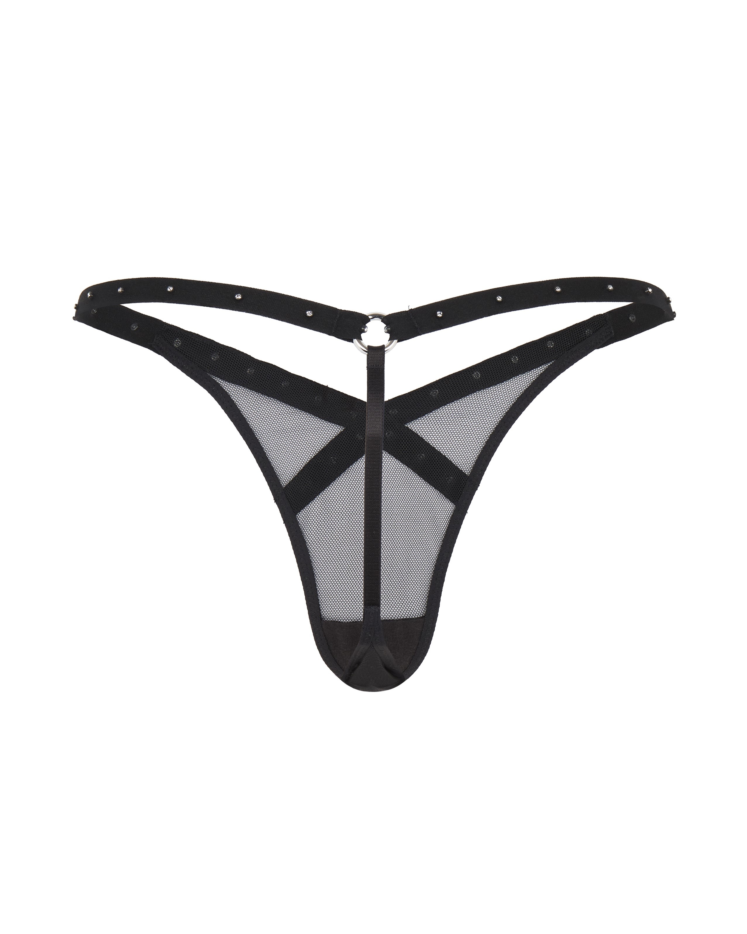 Основой черных трусиков стринг из коллекции Judy стал полупрозрачный сетчатый тюль. Модель трикси декорирована кристаллами. Идеальное дополнение к боди из той же коллекции.