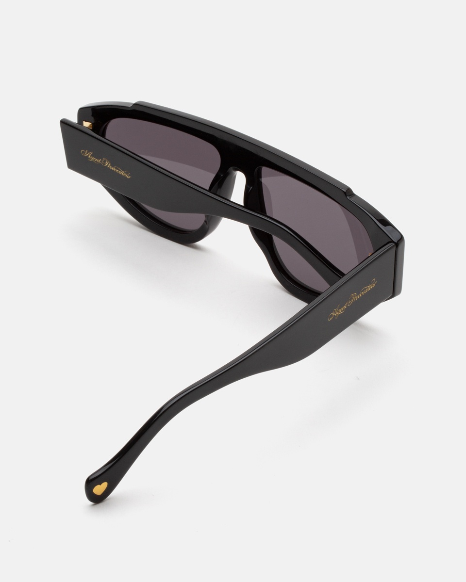 Полностью черные солнцезащитные очки из коллекции Tyrah обеспечивают 100% защиту от UVA и UVB излучений. Модель заключена в угловатую оправу с декоративной перфорированной частью. На дужке расположился логотип бренда золотистого цвета.