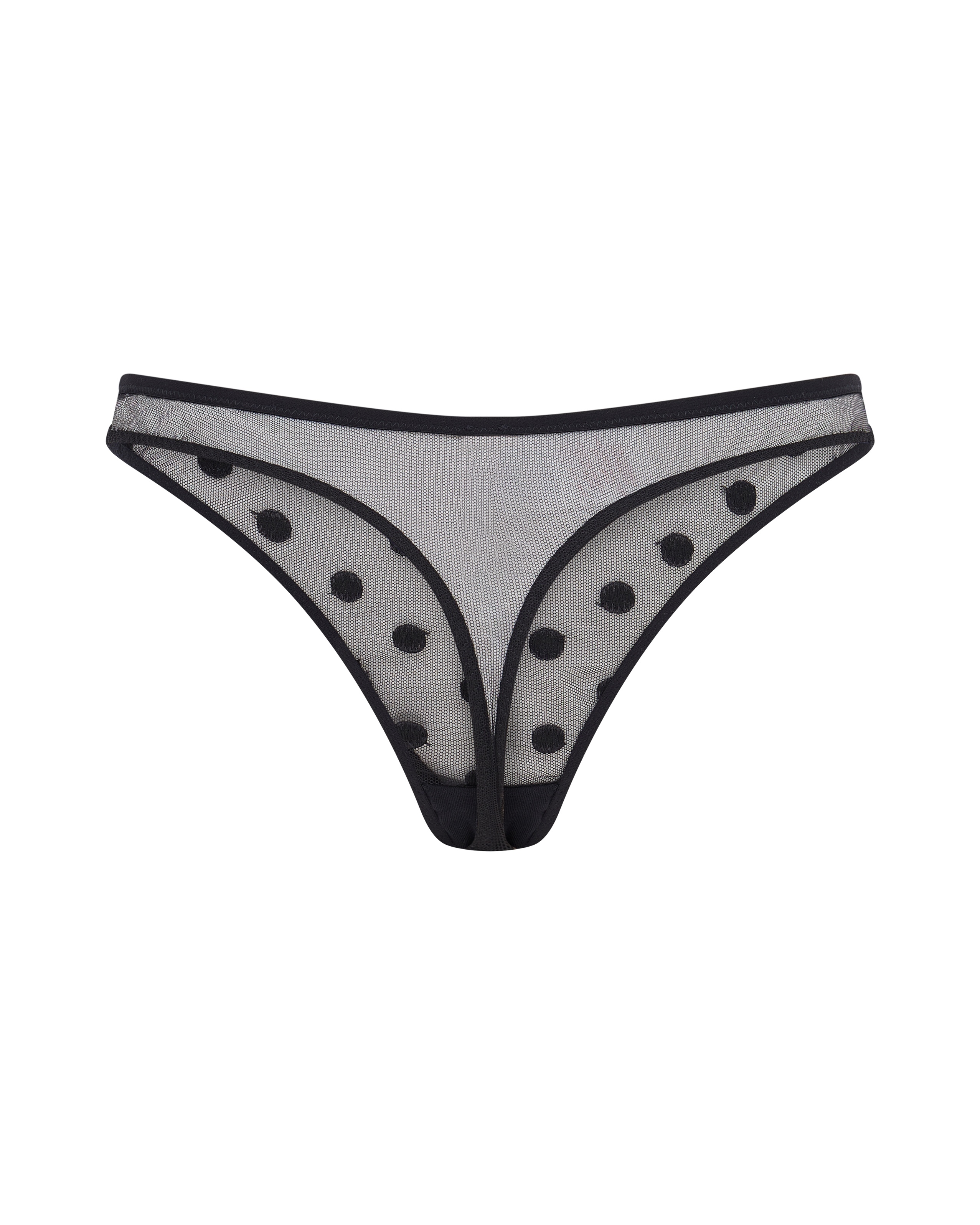 Стринги Camsen на прозрачной тюлевой основе дополнены блестящей вышивкой в виде горошин. Сочетайте с бюстгальтером из этой коллекции для завершенного образа.