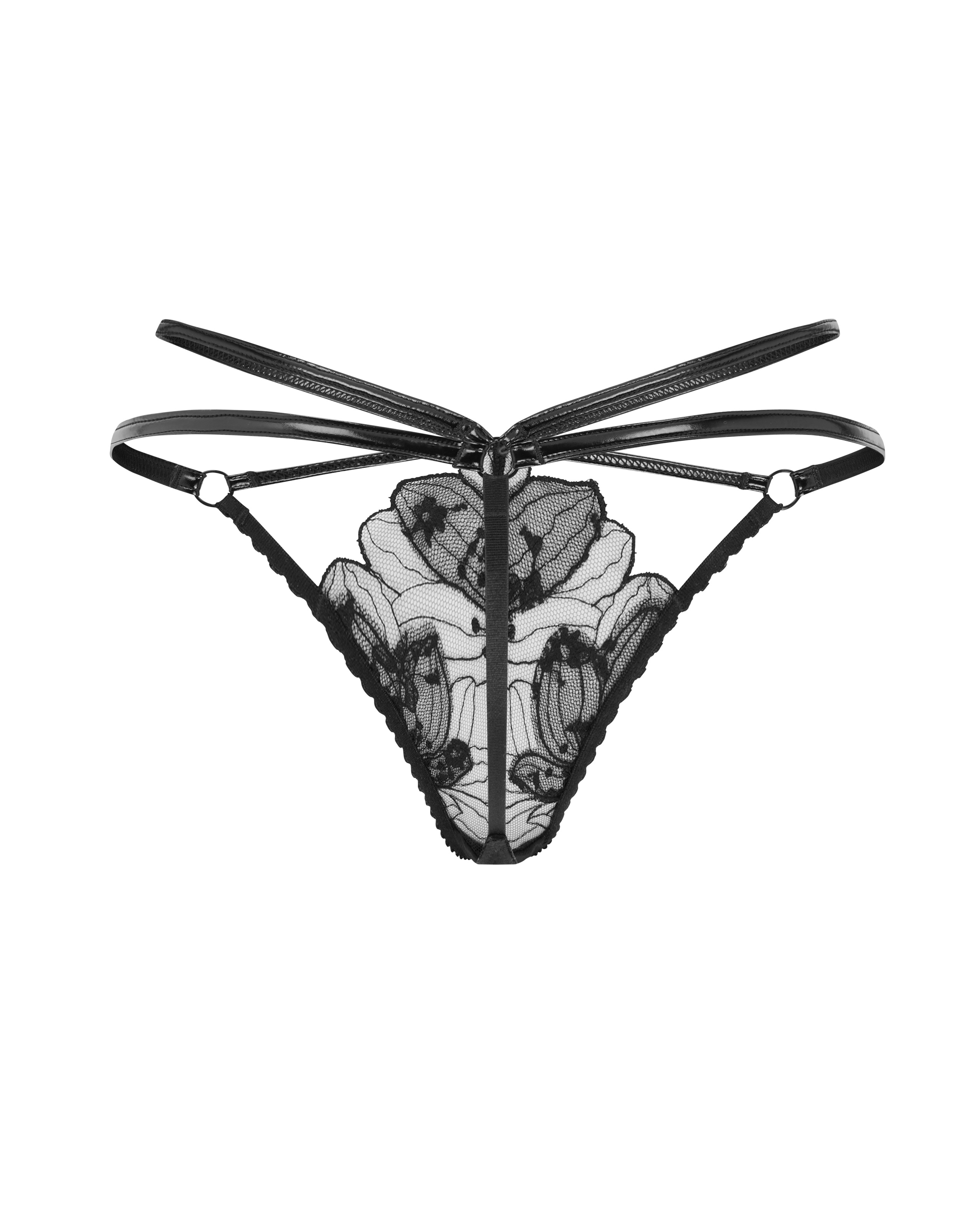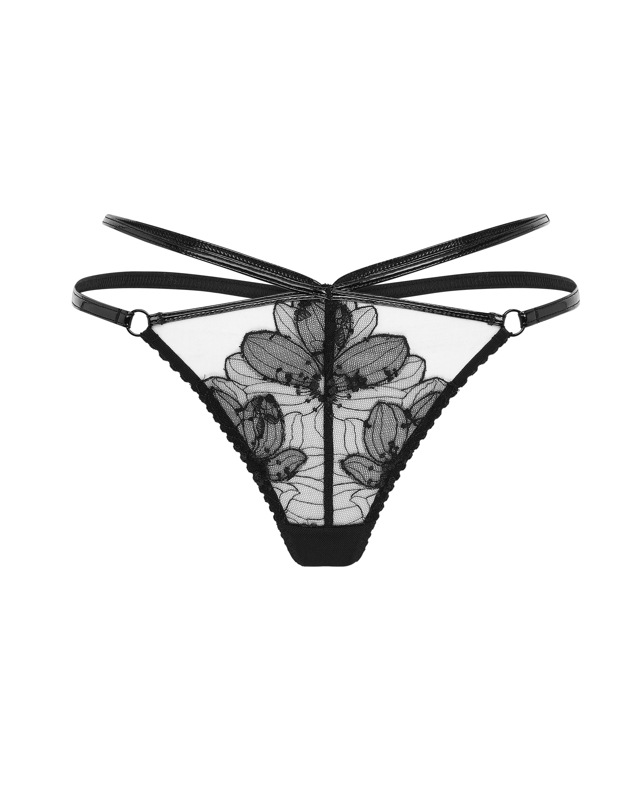 Стринги Litzia черного цвета с ремешками и минималистичным дизайном в стиле танга придают пикантности вашему наряду. Идеально дополняют остальные элементы коллекции для смелого вечернего образа.