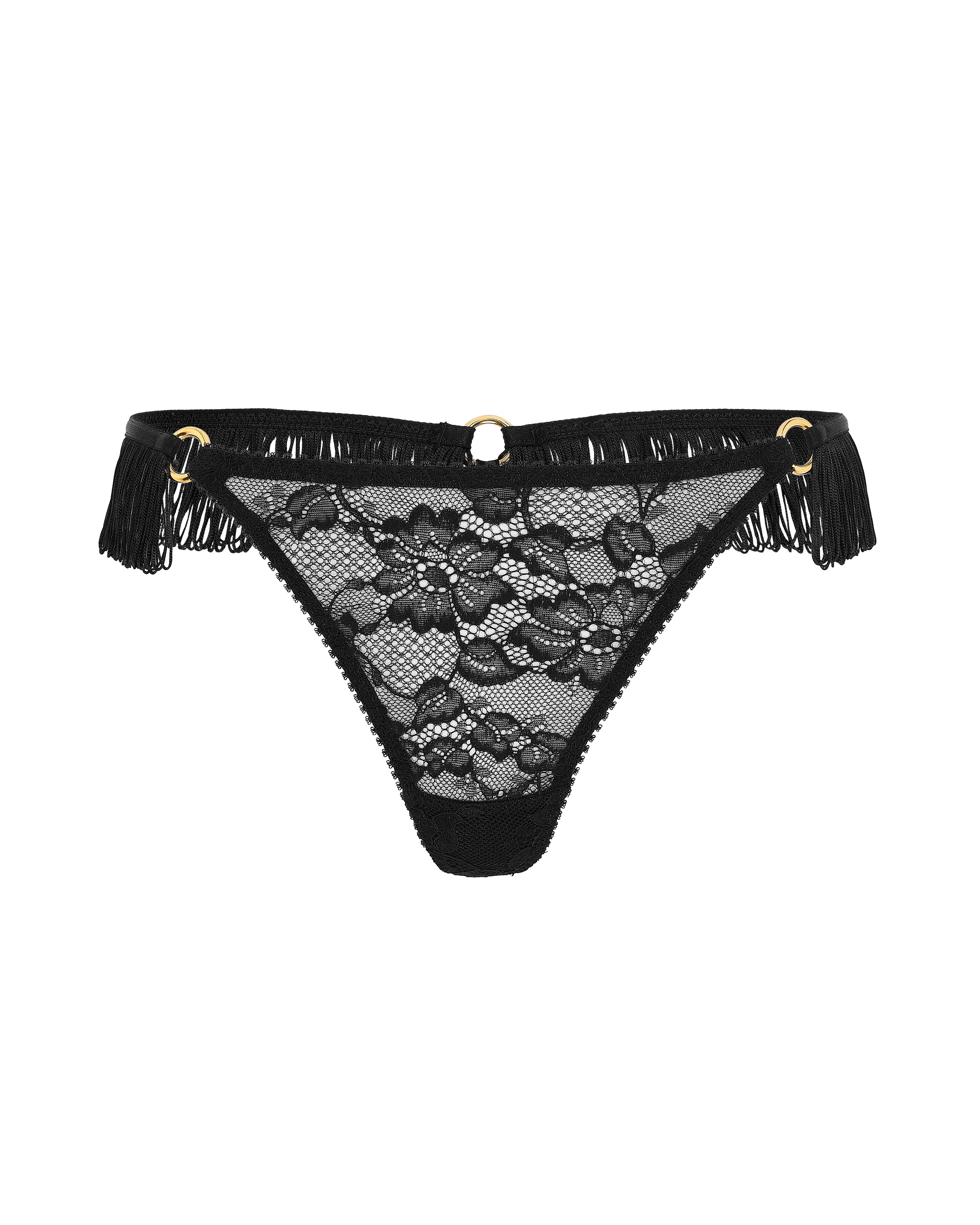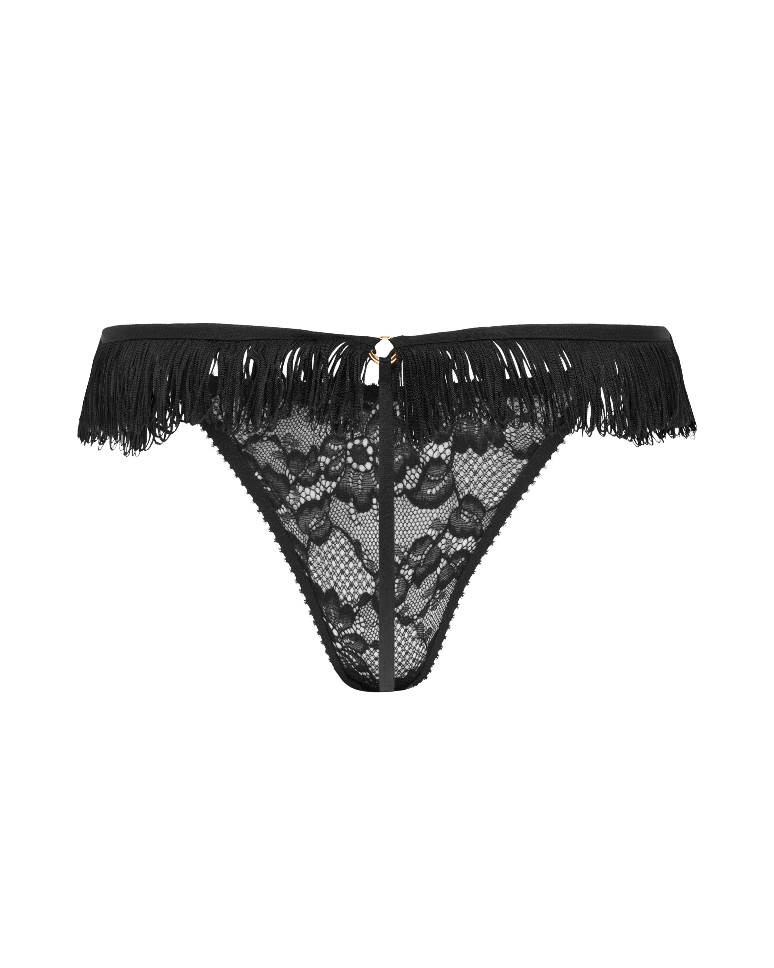 Трусы стринги Miabelle с цветочным кружевом и петельной бахромой на бедрах — идеальный выбор для стильного образа. В комплекте с другими элементами коллекции создают цельный и запоминающийся образ.
