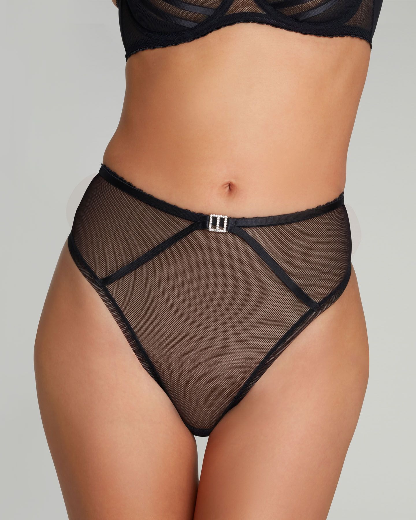 Черные трусики стринги с высокой посадкой Aiden создают соблазнительный силуэт. Модель изготовлена из тянущегося микро-сетчатого материала, обеспечивающего комфорт и отличную посадку. Детали из атласной эластичной ленты добавляют изысканности, а кристальная пряжка вносит нотку роскоши. Волнистая отделка создает деликатное и утонченное завершение образа. Для создания современного гламурного образа, сочетайте с остальными элементами коллекции Aiden.