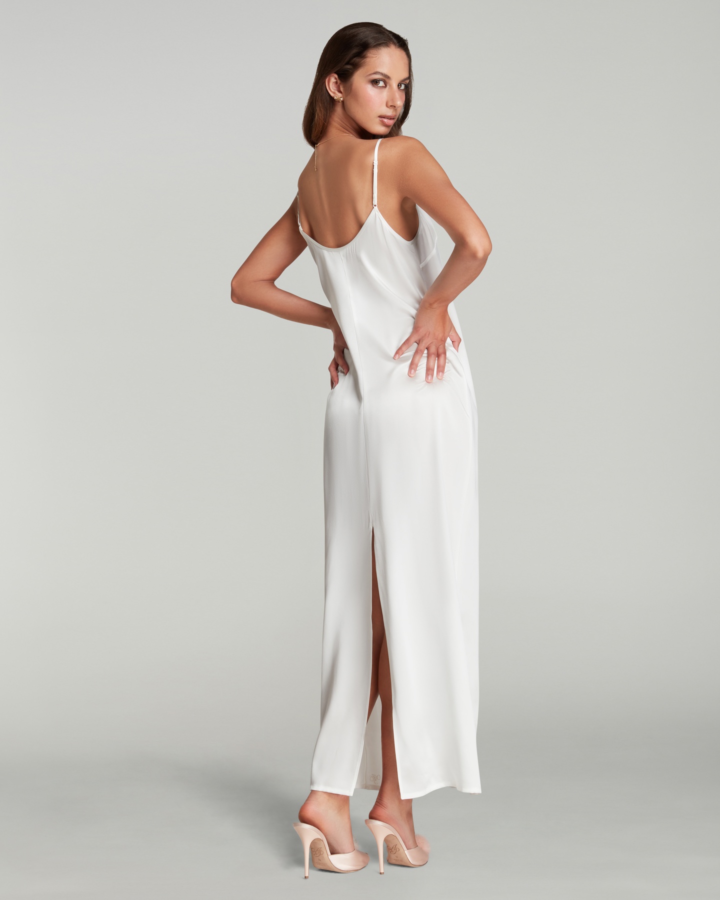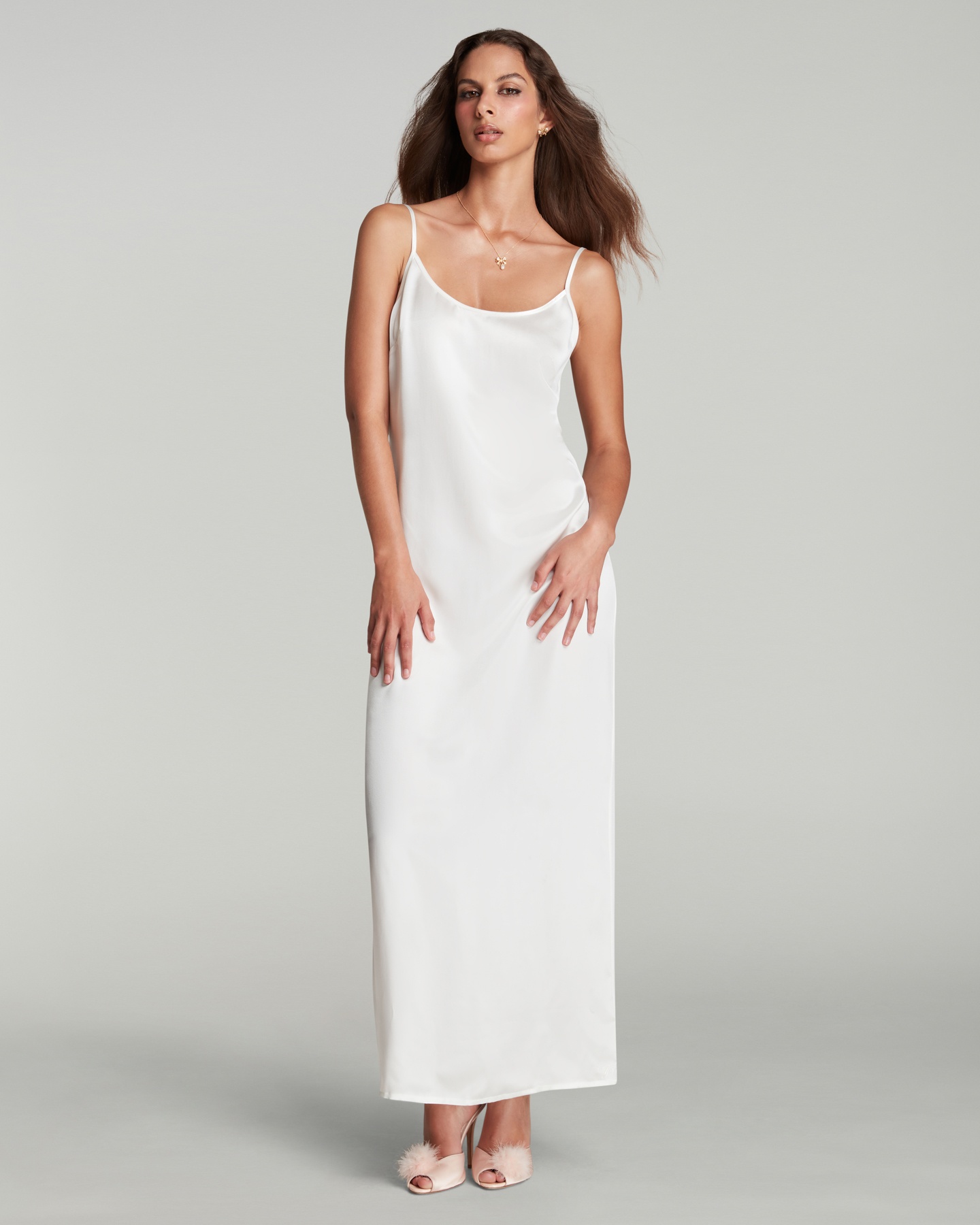 Длинная сорочка Cecily нежного цвета слоновой кости — это соблазнительное шелковое платье-комбинация, которое изящно драпируется, создавая восхитительный силуэт. Наденьте под нее белье AP для создания завершенного образа.
