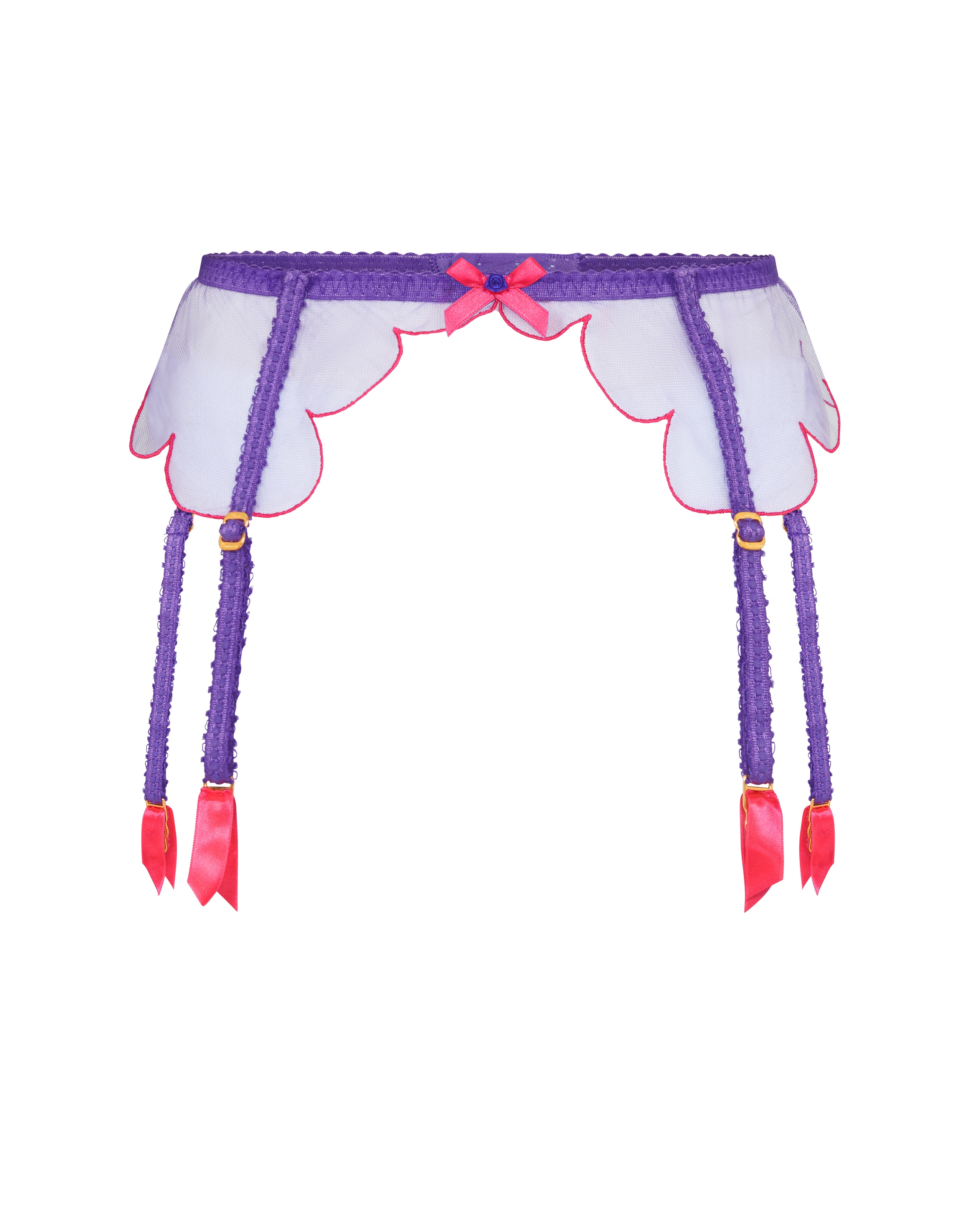 В коллекции Lorna представлен фиолетово-розовый пояс с прозрачными вставками из тюля, плавными волнистыми линиями и австрийской вышивкой. Французские швы подчеркивают аккуратность исполнения.