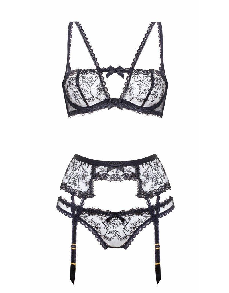 Rosa - воплощение изощренного соблазна. Прозрачные черные французские трусики из тюля украшены цветочной кружевной вышивкой и оторочены кружевом по краю. Талию украшает шелковый бантик. Сзади кружевные полоски перекрещиваются над ягодицами, создавая соблазнительный вырез. Разрез на ластовице делает трусики еще более провокационными.