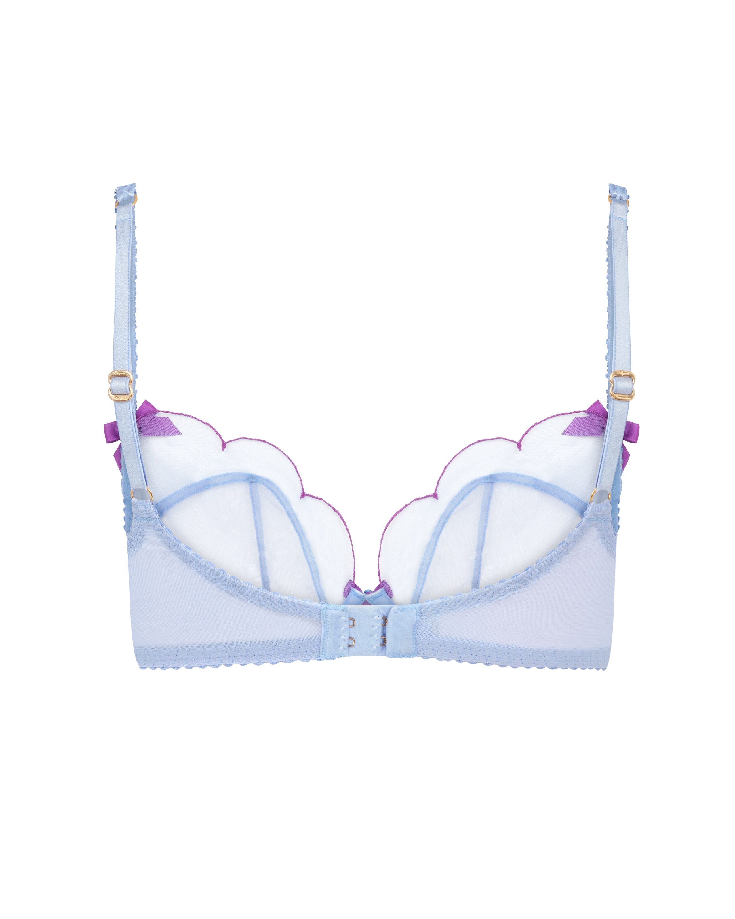 Бюстгальтер Lorna с глубоким вырезом — бестселлер, вернувшийся в холодной гамме голубых оттенков. Соблазнительная модель с фирменными ажурными краями, украшенная атласными бантами и нежными бутонами роз. Lorna — это идеальный баланс нежности и сексуальности. Объедините с коллекцией Lorna для полного погружения в наслаждение.