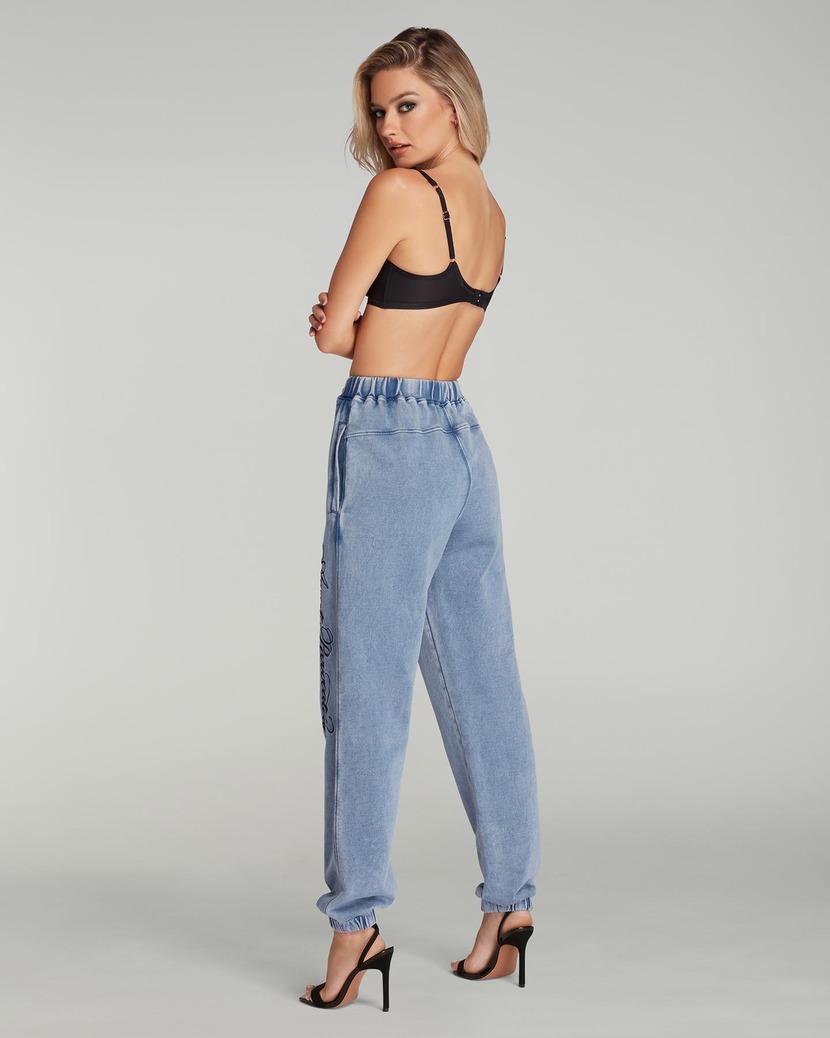 Джинсово-голубые джоггеры из коллекции Rayley выполнены из органического хлопкового джерси. Эластичный комфортный пояс подчеркивает эстетику роскошного спортивного стиля. Черная вышивка с логотипом "Agent Provocateur" протянулась вдоль ноги. Для расслабления после тренировки или для повседневного образа носите с другими предметами из этой коллекции. Обратите внимание: между изделиями будет небольшое отличие в оттенках, а цвет джинсовой ткани может немного выцветать при стирке/носке из-за специфики процесса окрашивания.