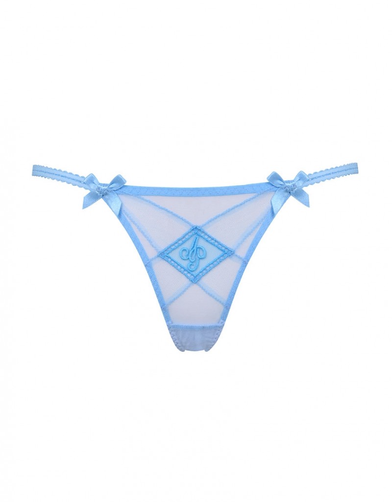Будьте воплощением провокационного очарования в Casper. Эта коллекция вдохновлена традиционной английской вышивкой 19 века. Пудрово-голубые трусики стринги из прозрачного тюля, сидящего по фигуре, как вторая кожа, украшены монограммой AP в викторианском стиле и бантиком. Детали: тонкий, невесомый материал. Логотип AP. Материалы и уход: основной материал: 100% полиамид. Боковые тесемки: 75% полиамид, 25% эластан. Ластовица: 100% хлопок. Рекомендована ручная стирка.
