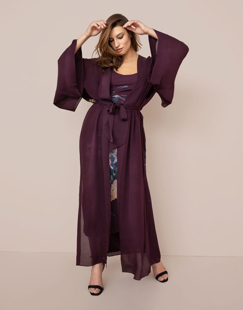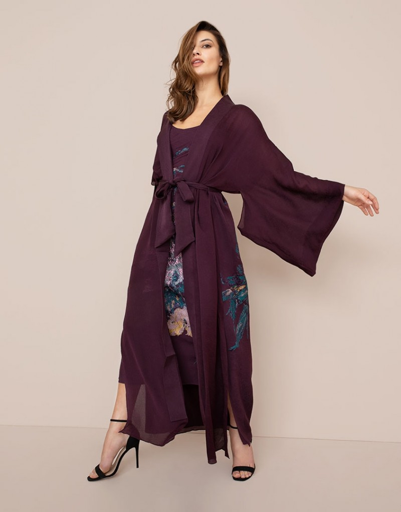 Почувствуйте уют этой зимой в комплекте Fay глубокого пурпурного цвета. Длинный халат Fay, выполненный в стиле традиционных японских кимоно, на спине украшен принтом с цветочными мотивами. Детали: сочетайте с сорочкой Fay. Материалы и уход: 100% шелк. Только ручная стирка.