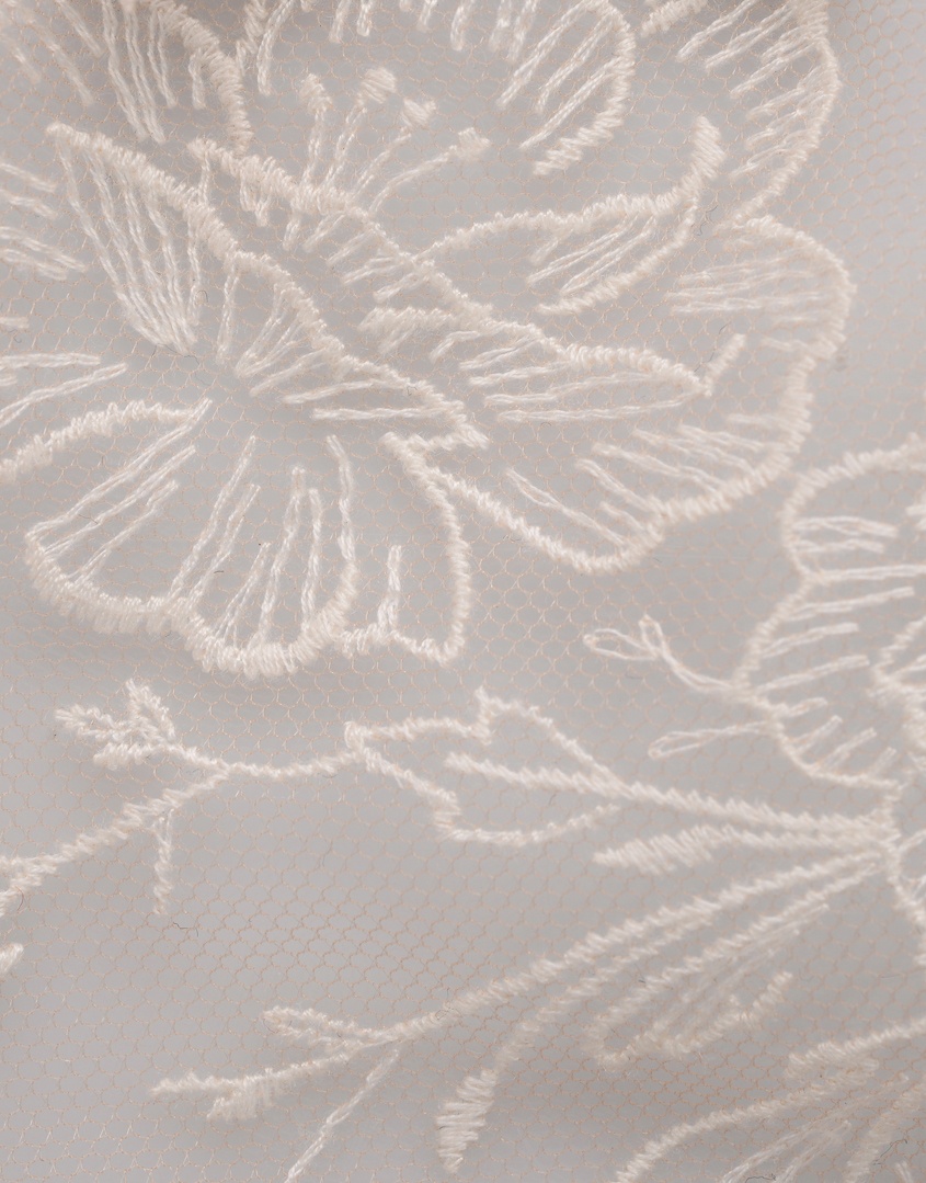 Комплект Gloria безупречно прекрасный и невероятно смелый. Трусики из тюля телесного оттенка украшены цветочной вышивкой, которая создает эффект татуажа на обнаженном теле. Окантовка из шелка по краям и игривый бант в центре завершают образ. Дополните комплект подходящими по цвету чулками под пояс Seam & Heel Stretch
