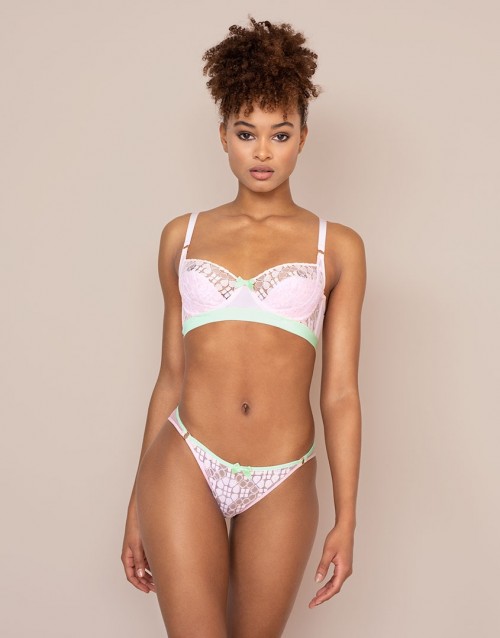 Коллекция Quin в стиле 1960-х обольщает нежными мятными и розовыми оттенками. Трусики из хлопкового французского кружева Ливерс украшены контрастной лентой в рубчик и очаровательным бантиком спереди. Детали: сочетайте с комплектом белья Quin. Золотая фурнитура. Материалы и уход: основной материал: 100% полиамид. Сетка: 74% полиамид, 26% эластан. Подкладка сетки: 100% полиамид. Ластовица: 100% хлопок. Рекомендована ручная стирка.