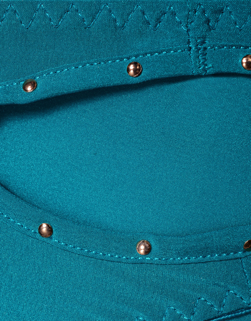 Коллекция Lizabetha выполнена из шелка-стрейч лазурного цвета. Классические трусики с соблазнительными вырезами на бедрах и ягодицах украшены крошечными золотистыми клепками, которые добавляют роскоши повседневному образу.