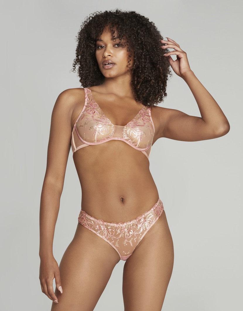 Коллекция Svanna, в которую включена эта модель классических трусиков, вдохновлена плодородием и богатством. Эти мотивы реализованы с помощью уникальной вышивки, разработанной в Швейцарии. Тонкие колоски пшеницы — символа плодородия, выполнены в виде тонкого фольгированного узора. Верхний край передней панели обрамлен эластичной лентой с резным краем.