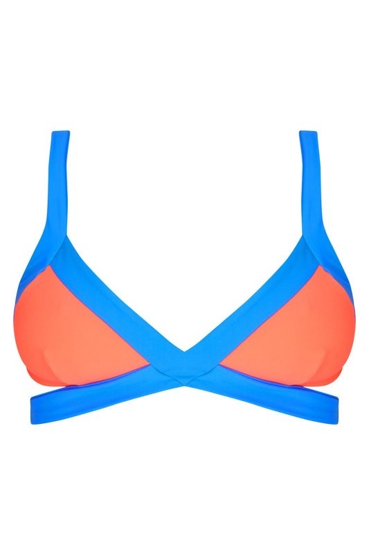 Новая версия бестселлера Mazzy: классический бандажный купальник в сочетании ярко-желтого, кораллового и светло-синего цветов. Этот бюстгальтер сразу привлекает внимание и искусно подчеркивает формы благодаря перекрещивающимся лямкам, обнажающим тело под грудью. Спортивный и сексуальный, этот бюстгальтер бикини с легкостью сделает вас королевой пляжа.