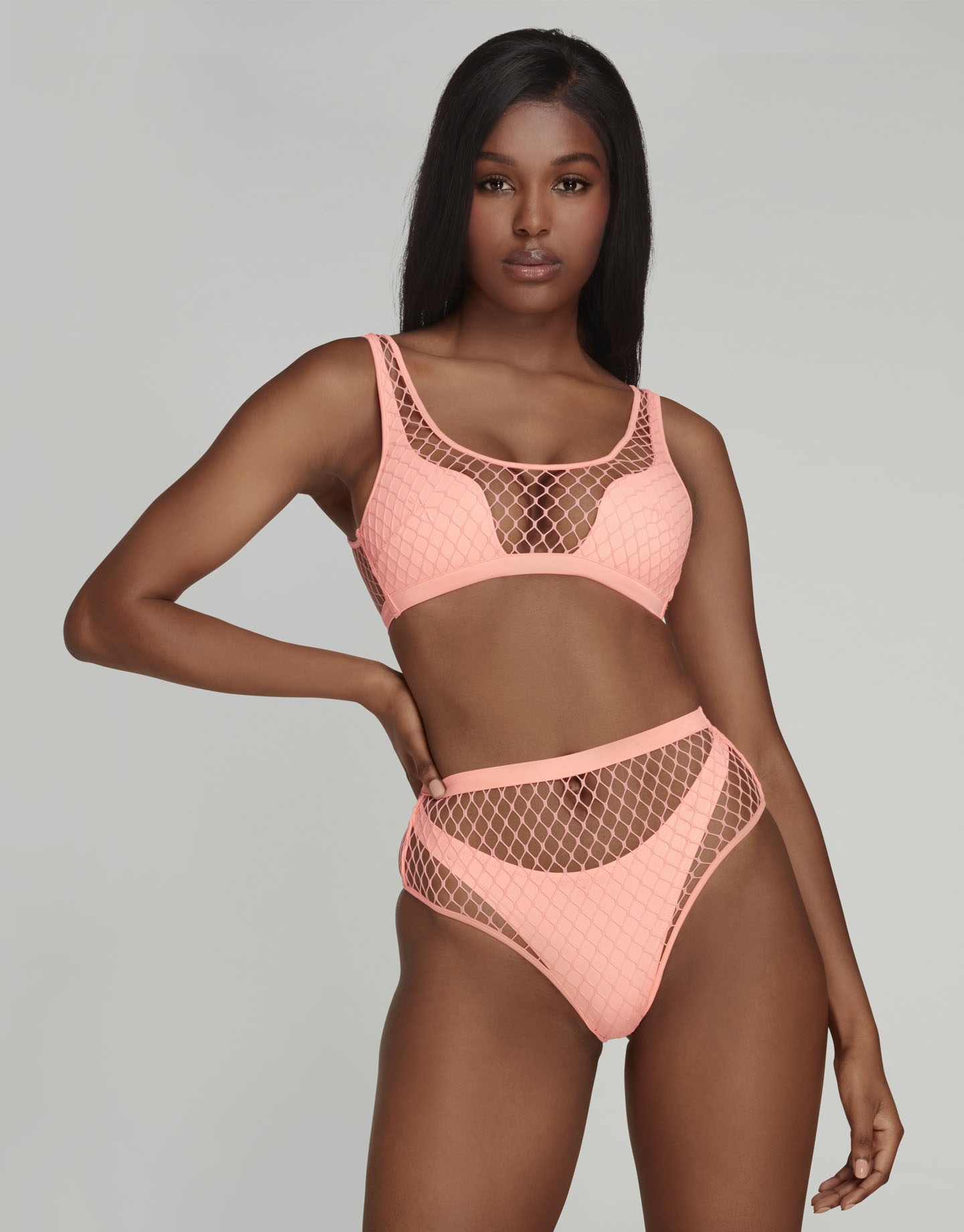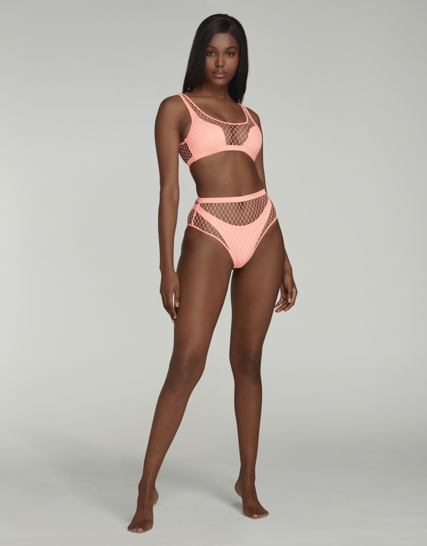 Бикини Shannon из коллекции, вдохновленной спортивной эстетикой 90-х. Высокая посадка на талии очерчена эластичным поясом и графичной сеткой крупной фракции. Внутренний слой выполнен в виде классических плавок в современном стиле. Для идеального образа сочетайте эту модель с лифом из линии Shannon.