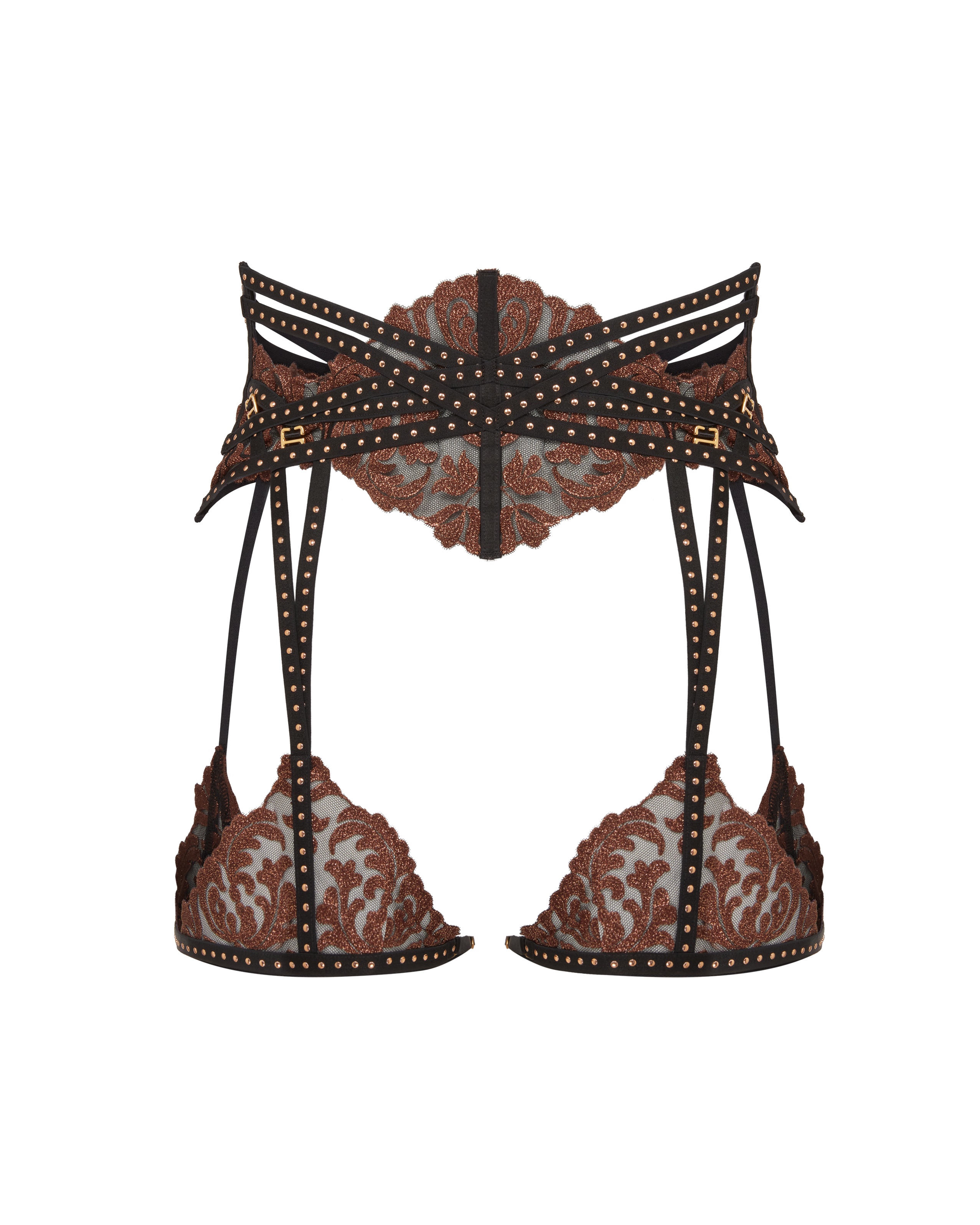 | Состав | Верхний слой: Основа: 100% полиэстер; Вышивка: 84% полиэстер, 16% металлизированное волокно; Подкладка: 100% полиамид; Эластичная тесьма: 86% полиамид, 14% эластан |