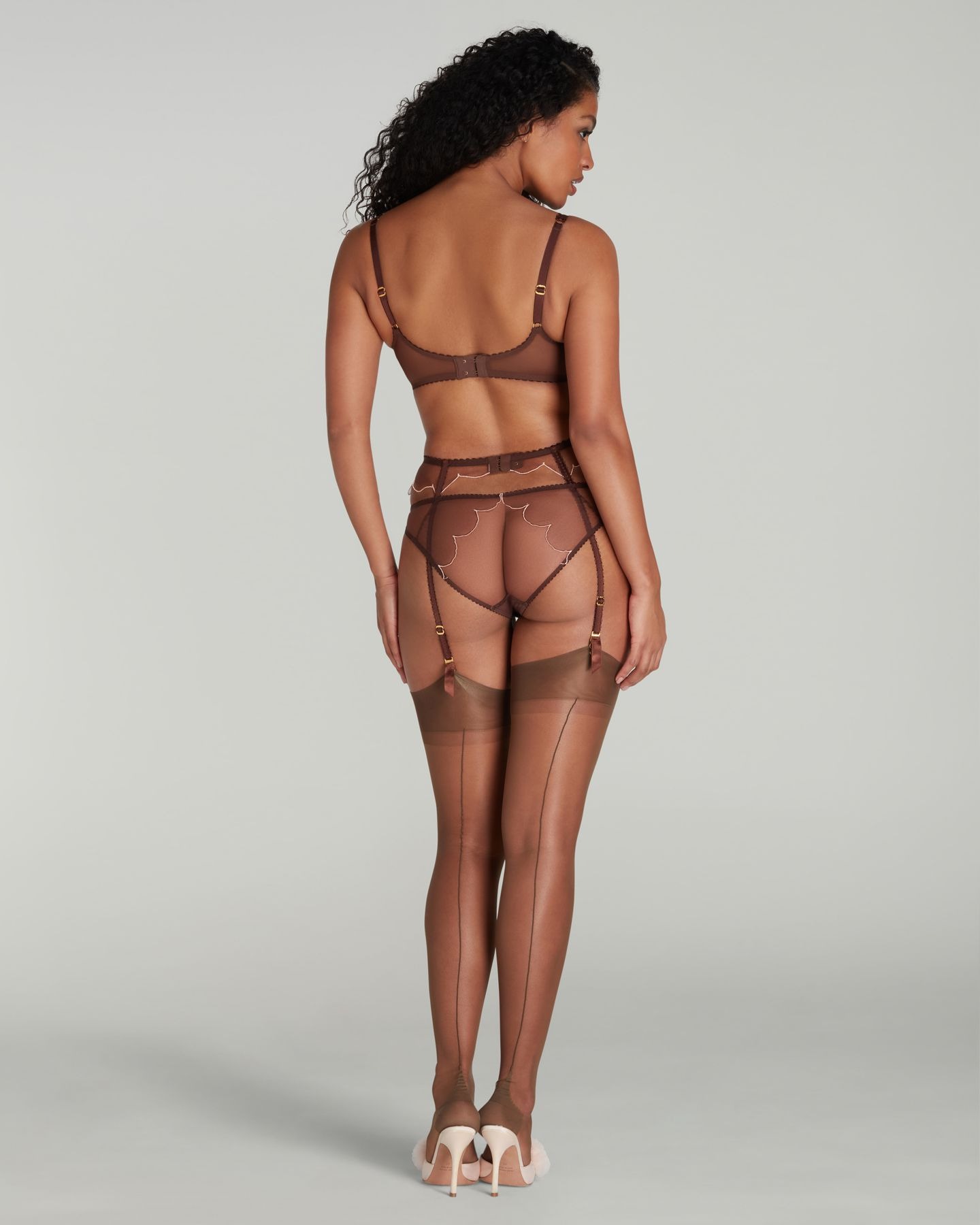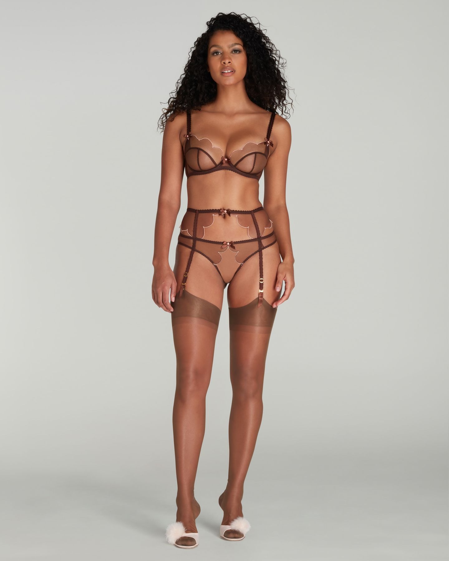Легендарная очаровательная Lorna возвращается в новом дизайне с улучшенной посадкой. Добавьте ноту кокетства к комплекту Lorna с этим очаровательным поясом из полупрозрачного коричневого тюля с волнистым краем персикового цвета. Сатиновые ленточки на пажах и застежка из золотистого металла завершают образ. Детали: дизайн в стиле 60-х. Сочетайте с комплектом белья Lorna. Материалы и уход: 100% полиамид. Рекомендована ручная стирка.