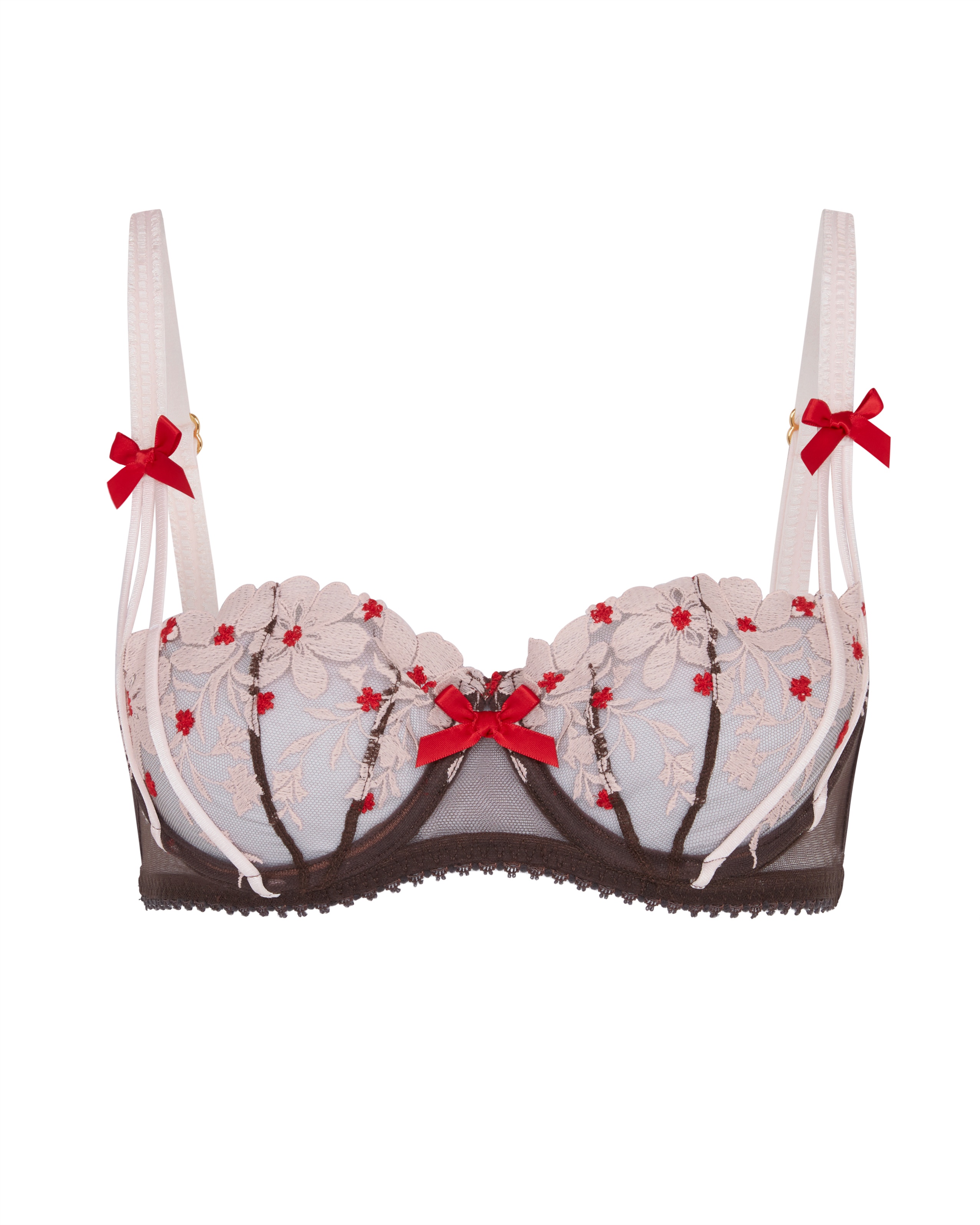 Бюстгальтер балконет Dawne с французской вышивкой дополнен драпированными лентами на бретелях, вдохновленными винтажными силуэтами. Завершите образ трусиками и поясом для чулок из этой линии.