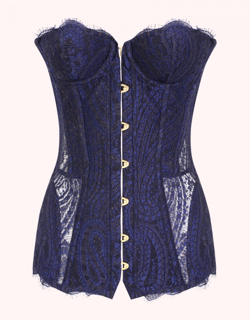 Madison - cовременное прочтение классики. Восхитительный корсет полуночно-синего цвета со вставками из черного кружева ливерс великолепно подчеркнет изгибы фигуры, встроенный бюстгальтер на косточках с эффектом пуш-ап соблазнительно поднимает грудь. Продольные косточки и жесткие швы акцентируют талию. Спереди имеется застежка на золотистые крючки, сзади - традиционная корсетная шнуровка, которая позволяет подогнать модель по фигуре. Оторочка тонким кружевом по краю завершает образ. Для вечернего выхода сочетайте с юбкой Madison.