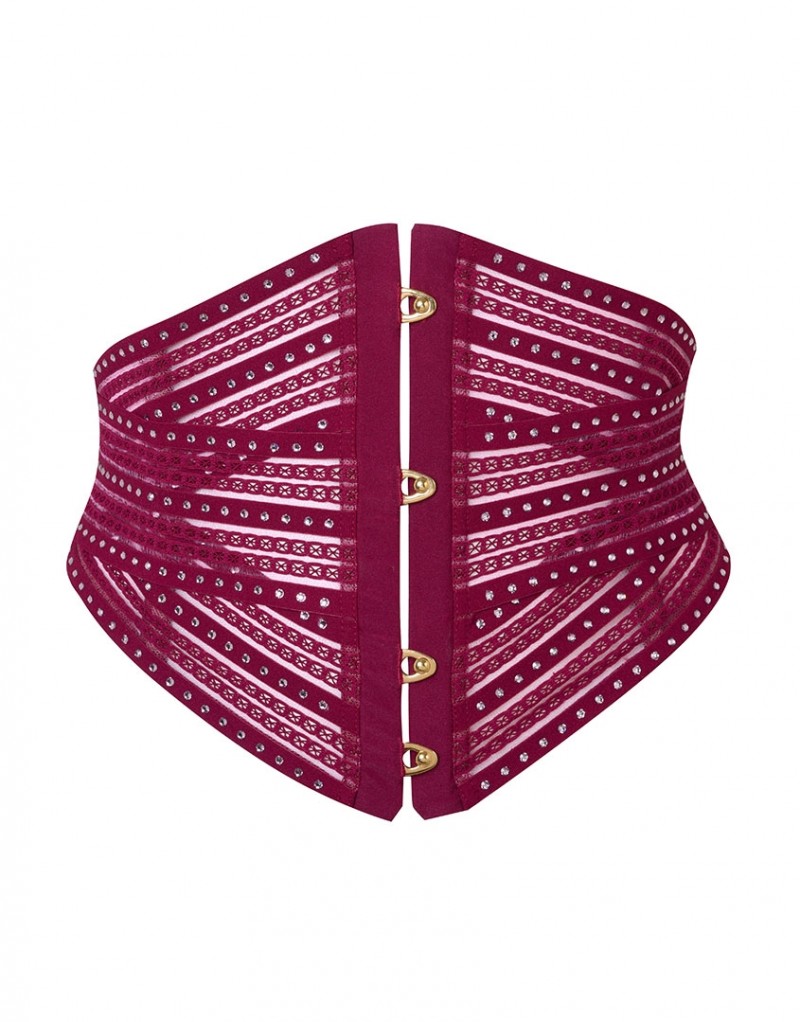 Очаровывайте в бандажной коллекции Tianna. Корсетный пояс темно-винного оттенка с роскошной инкрустацией из аметистовых кристаллов станет завершающим штрихом вашего образа. Модель с отделкой из шелкового крепа красиво подчеркнет ваши изгибы. Сочетайте с комплектом белья Tianna или носите поверх одежды как модный аксессуар.