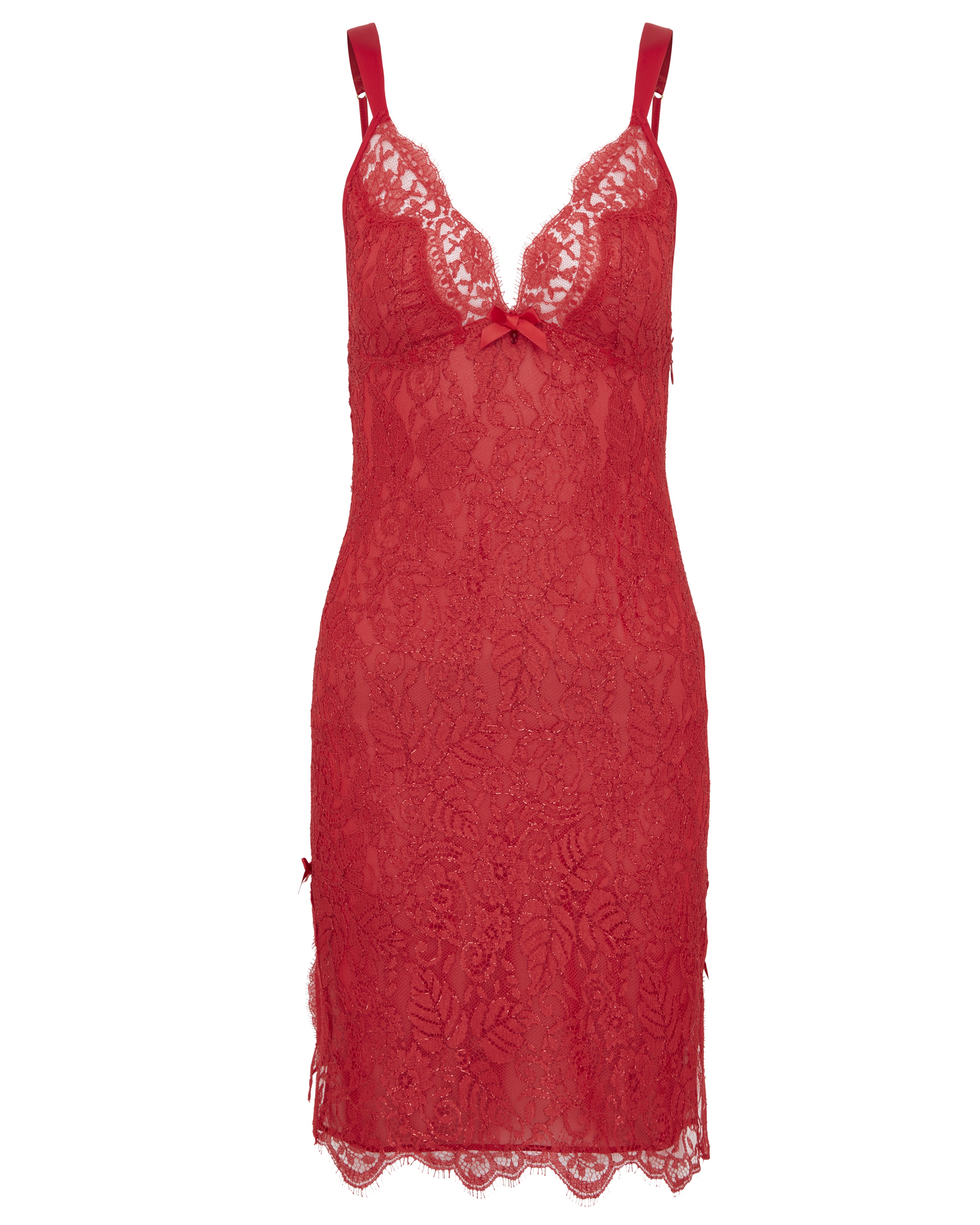 Красная сорочка Kateryna выполнена из французского кружева ливерс с металлической нитью. Модель с элегантной подкладкой из шелкового шифона. Учитывая деликатный характер кружева Leavers, используемого на чашечке комбинации, рекомендуется надевать изделие через голову, чтобы сохранить его первозданный вид, а не натягивать его на бедра.