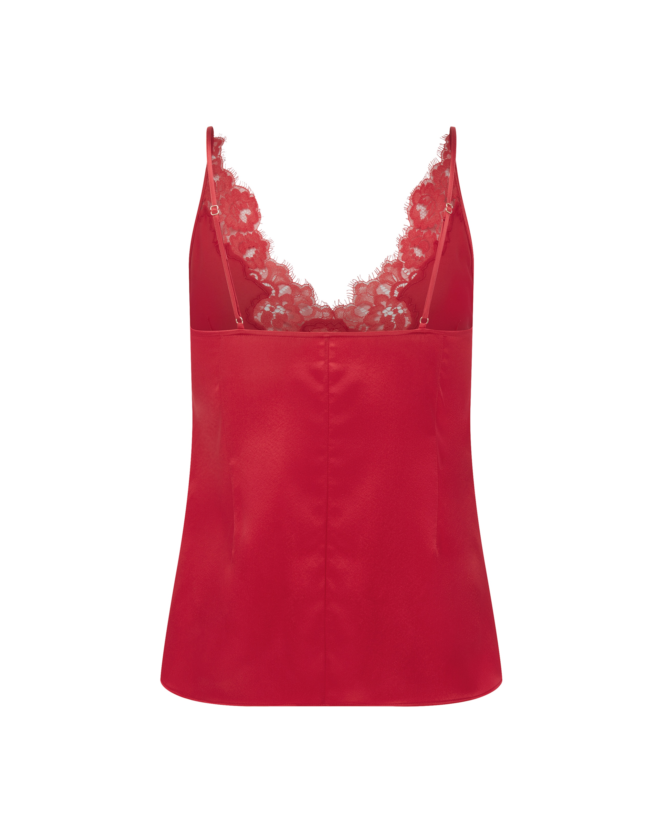 Красная камисоль из коллекции Emmaline со вставками из элегантного французского кружева Leavers. Изготовление из шелка обеспечивает приятное ощущение на коже и комфорт во время сна. Благодаря регулируемым бретелям, подгонка по фигуре становится простой и удобной. Прекрасно дополняется другими изделиями серии Emmaline, создавая идеальный ночной ансамбль.