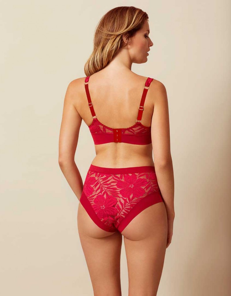 Произведите фурор в новом фаворите сезона - Audrey. Бюстгальтер с мягкими чашками из красного французского стретч-кружева с цветочным узором, выполненном на основе из крупной сетки, подчеркнет соблазнительную линию декольте. Широкая полоса нетканого бесшовного материала под чашками и на спине нежно прилегает к коже, придавая изящности силуэту. Широкие бретели и золотисто-розовая фурнитура завершают образ. Сочетайте с другими моделями из коллекции белья и аксессуаров Audrey.