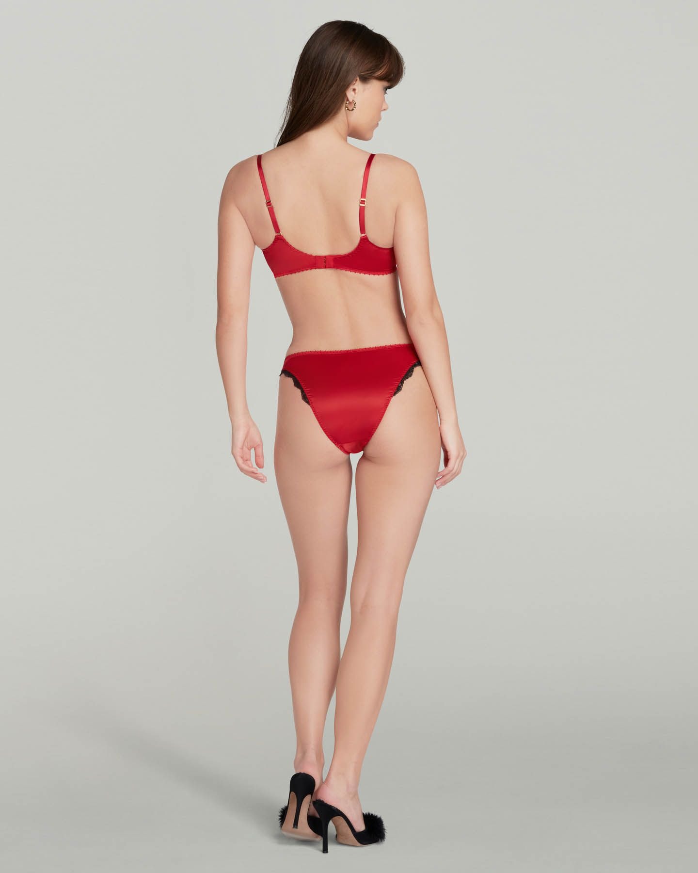 Красный бюстгальтер Sloane обладает формой балконет с плотной подкладкой, которая приподнимает вашу грудь, обеспечивая идеальное декольте. Модель выполнена из мягкого эластичного атласа, а фурнитура покрыта настоящим золотом. Красиво отделанное черным кружевом и атласными бантиками, это изделие не только функционально, но и роскошно. Чтобы создать завораживающий ансамбль в стиле вамп, соедините бюст с остальной коллекцией Sloane.