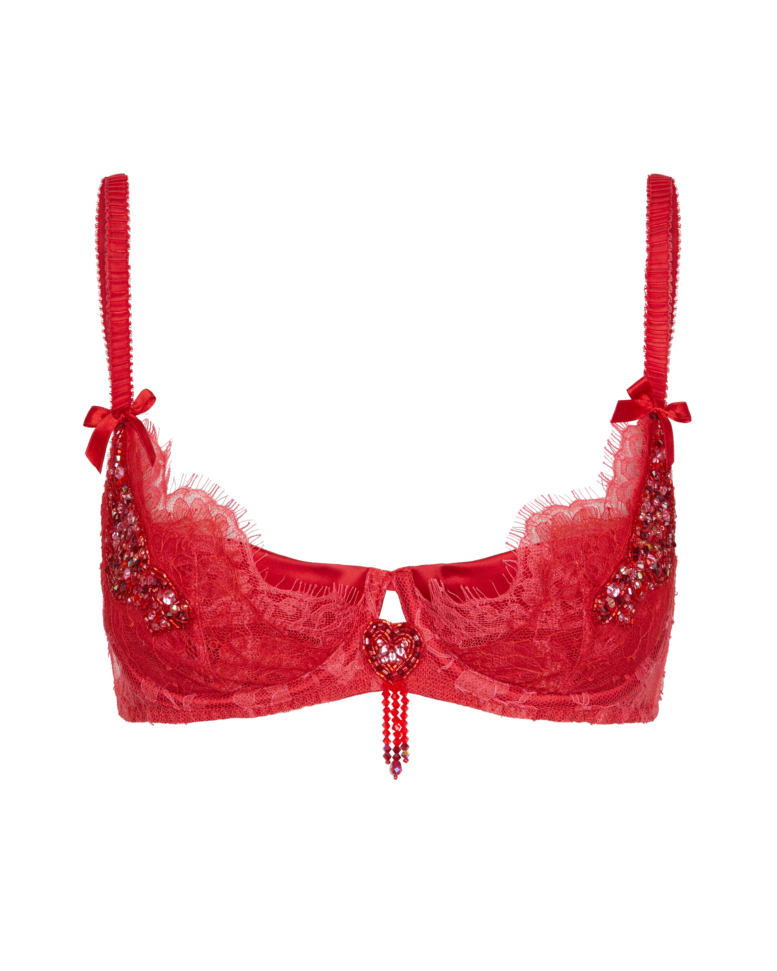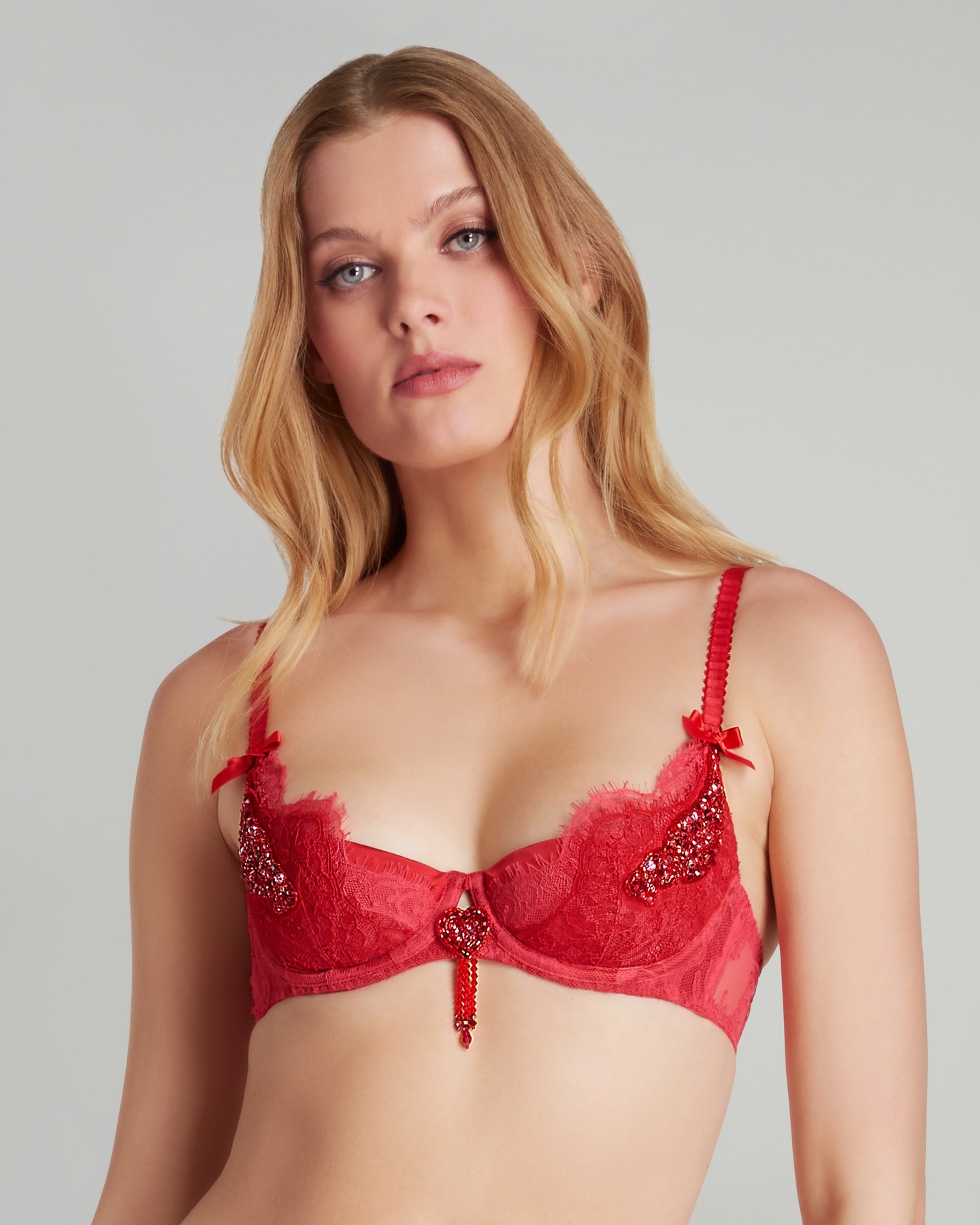 Этот бюстгальтер Graicelle создает объем за счет многослойного кружева Leavers на чашках с мягкими шелковыми вкладками. Бисерная вышивка, кисточки в виде сердечка между чашками и позолоченная фурнитура завершают дизайн. Крылья на итальянском тюле обеспечивают комфорт. Соберите полный комплект Graicelle для головокружительного образа.