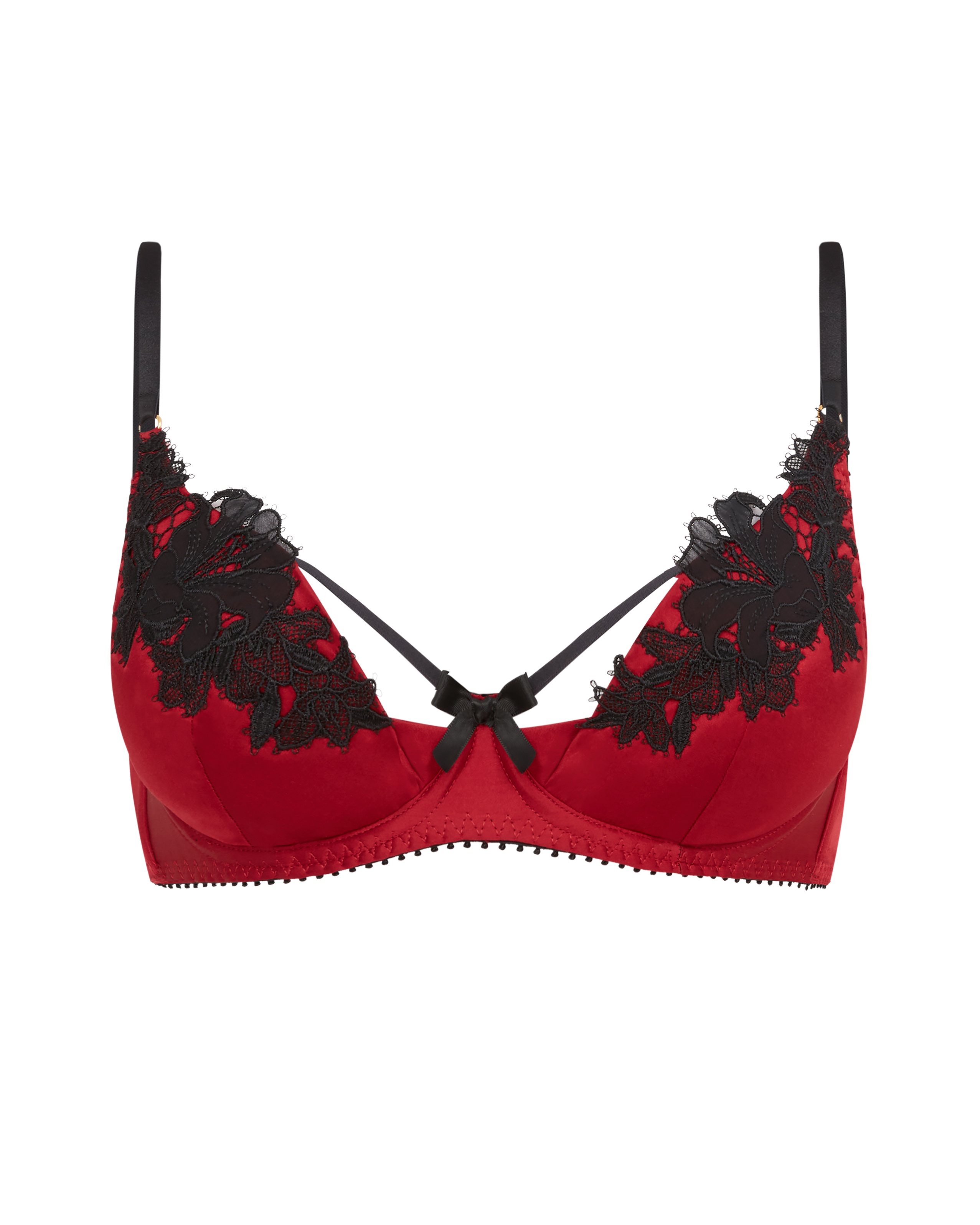 Бюстгальтер Penelopi красного цвета с плотными чашками и глубоким вырезом, на косточках, выполнен из атласа. Швейцарская цветочная вышивка и тонкие бретели создают изящный и смелый образ. Дополните ансамбль коллекцией Penelopi и ощутите магию соблазна.