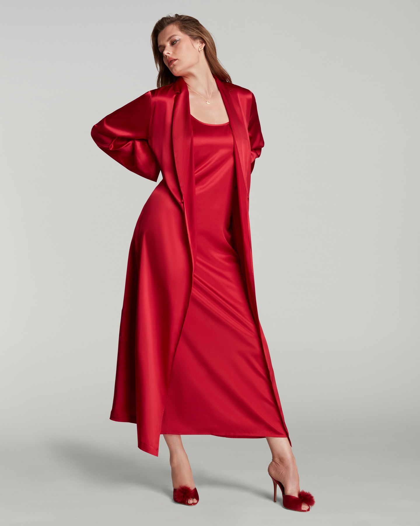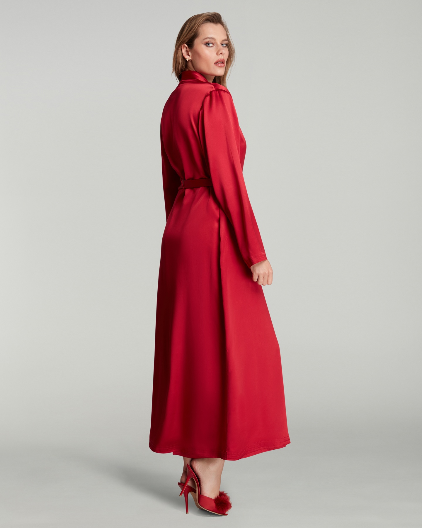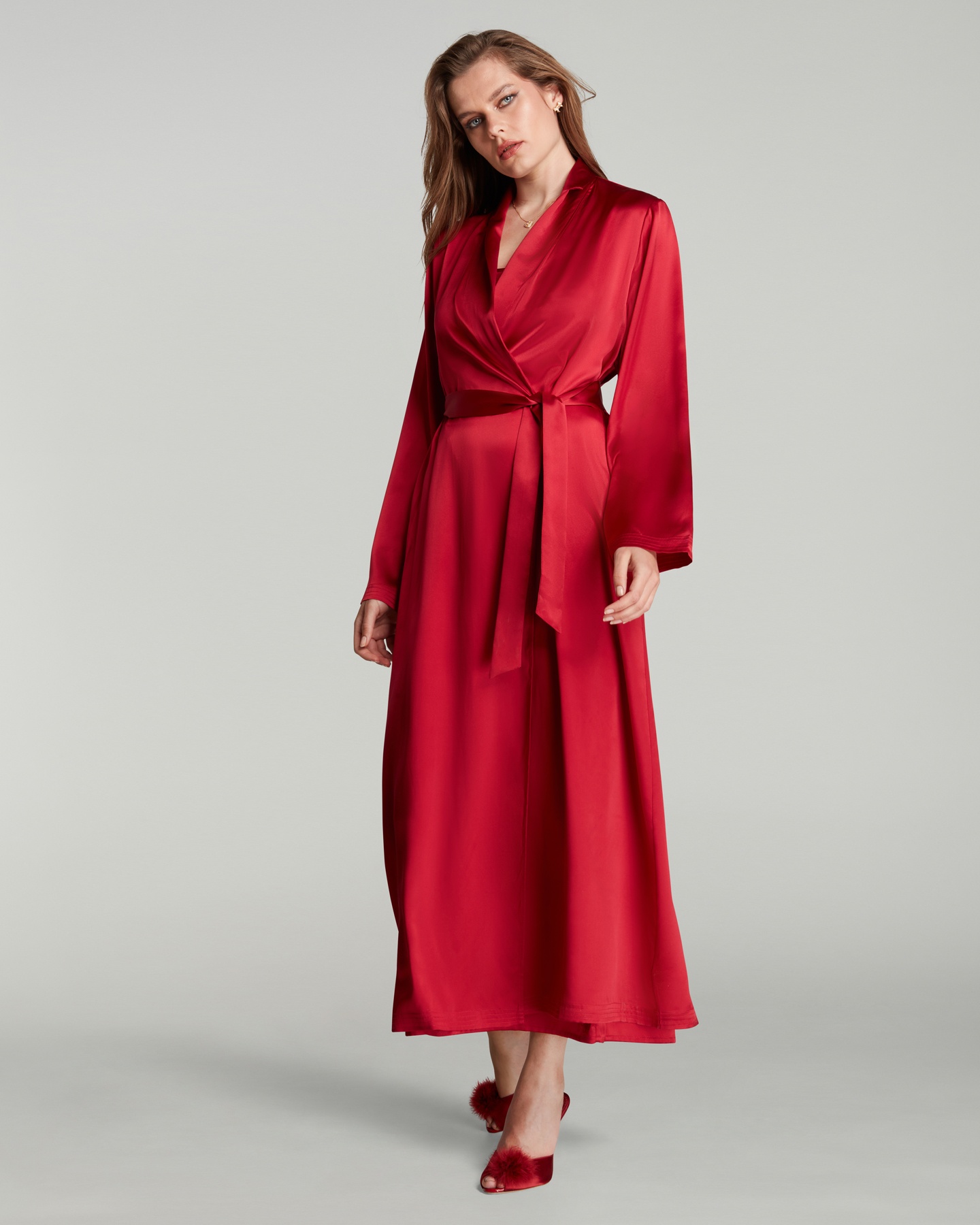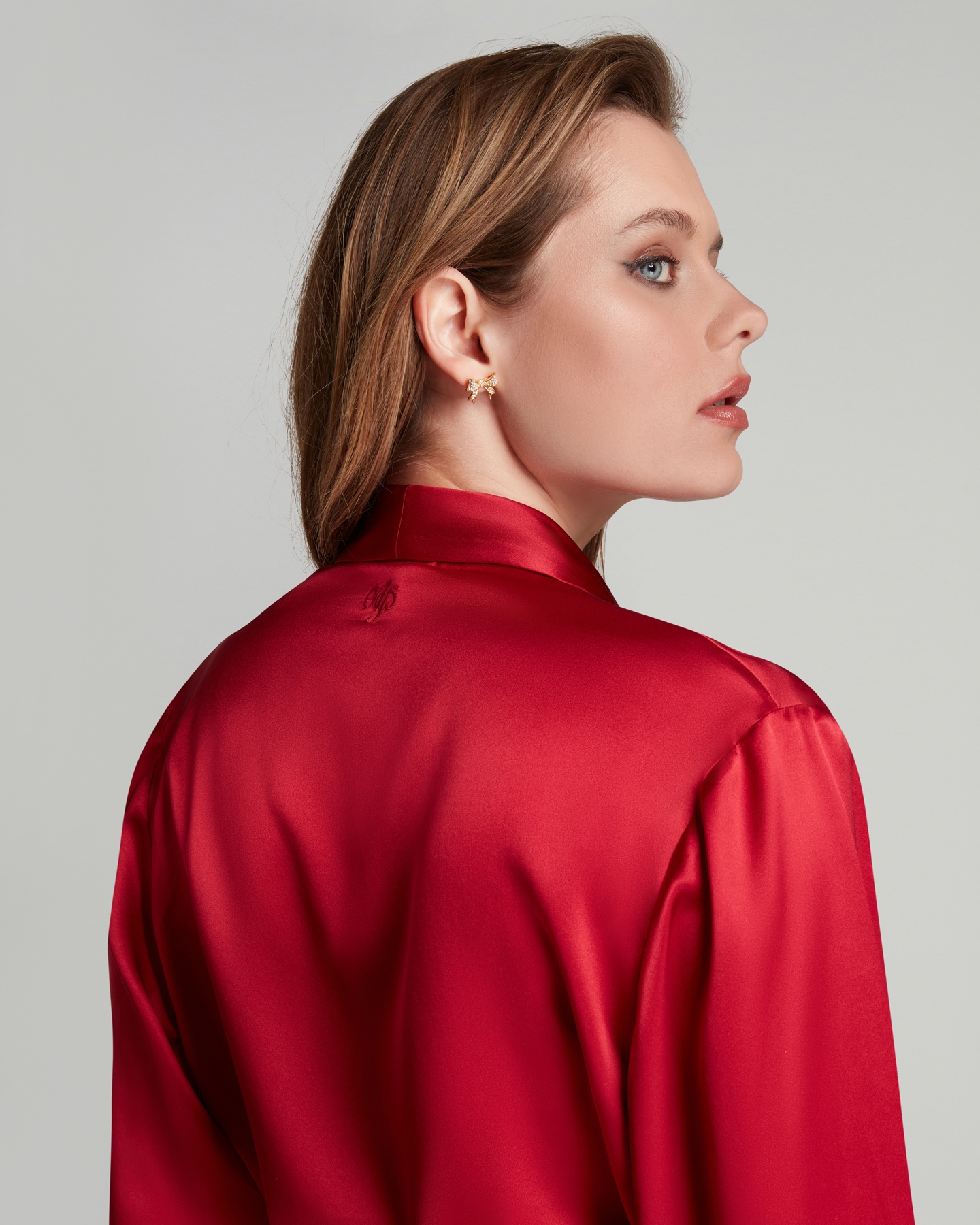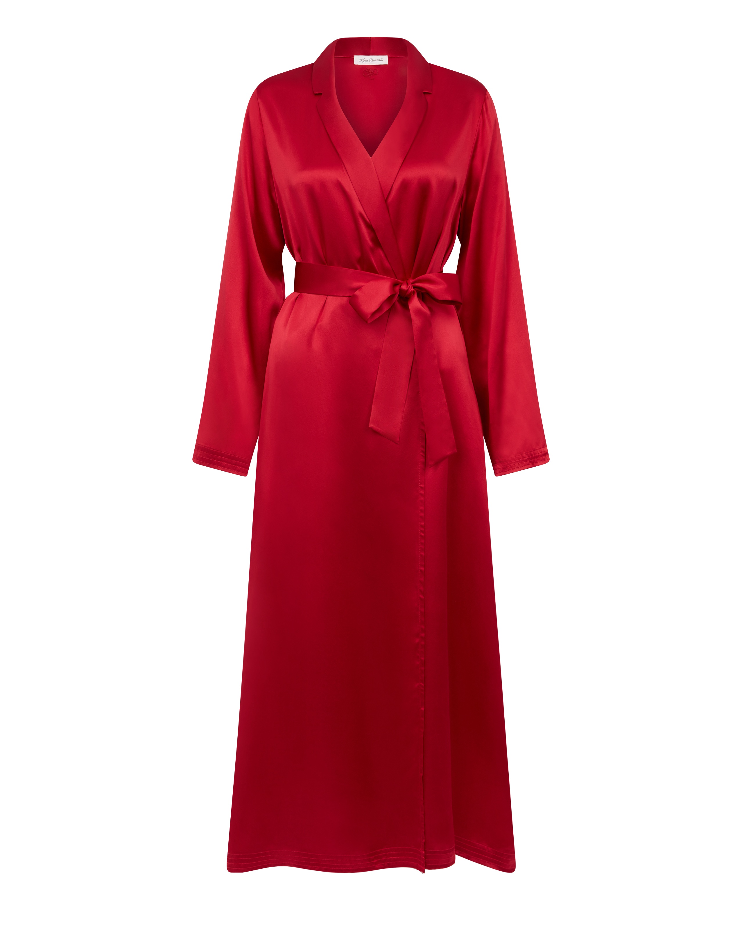 Алый халат Cecily: струящийся шелк, страсть в каждом складке. Мгновенно создает выразительный силуэт. Дополните образ нижним бельем AP для полного погружения в атмосферу роскоши.