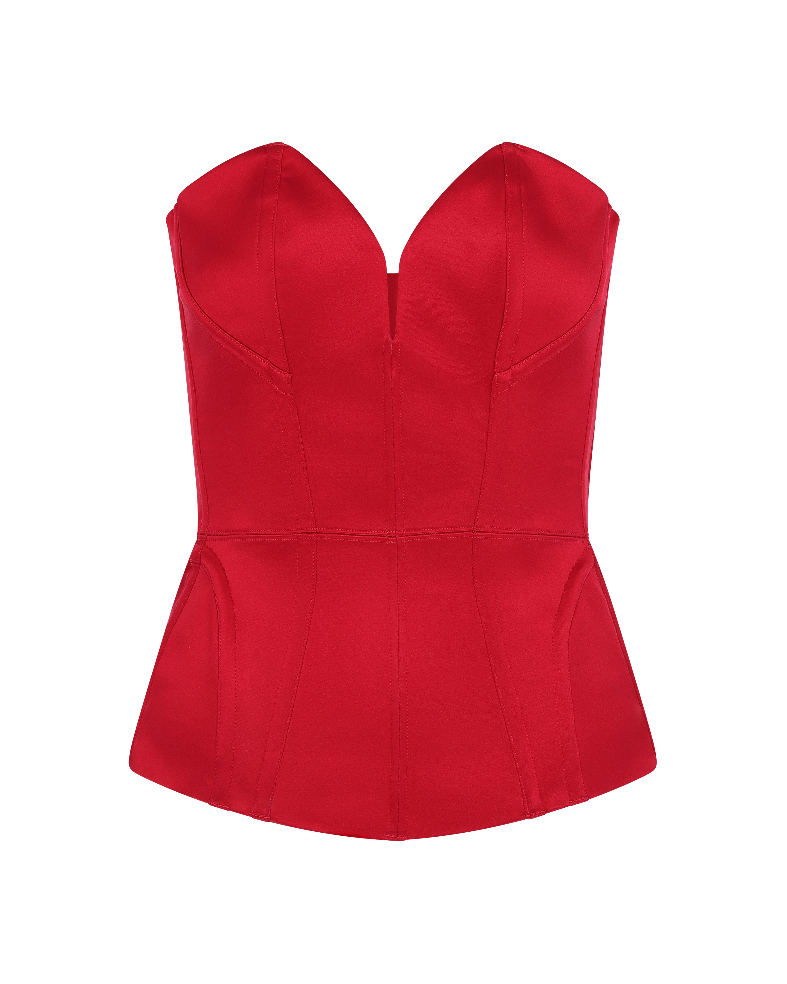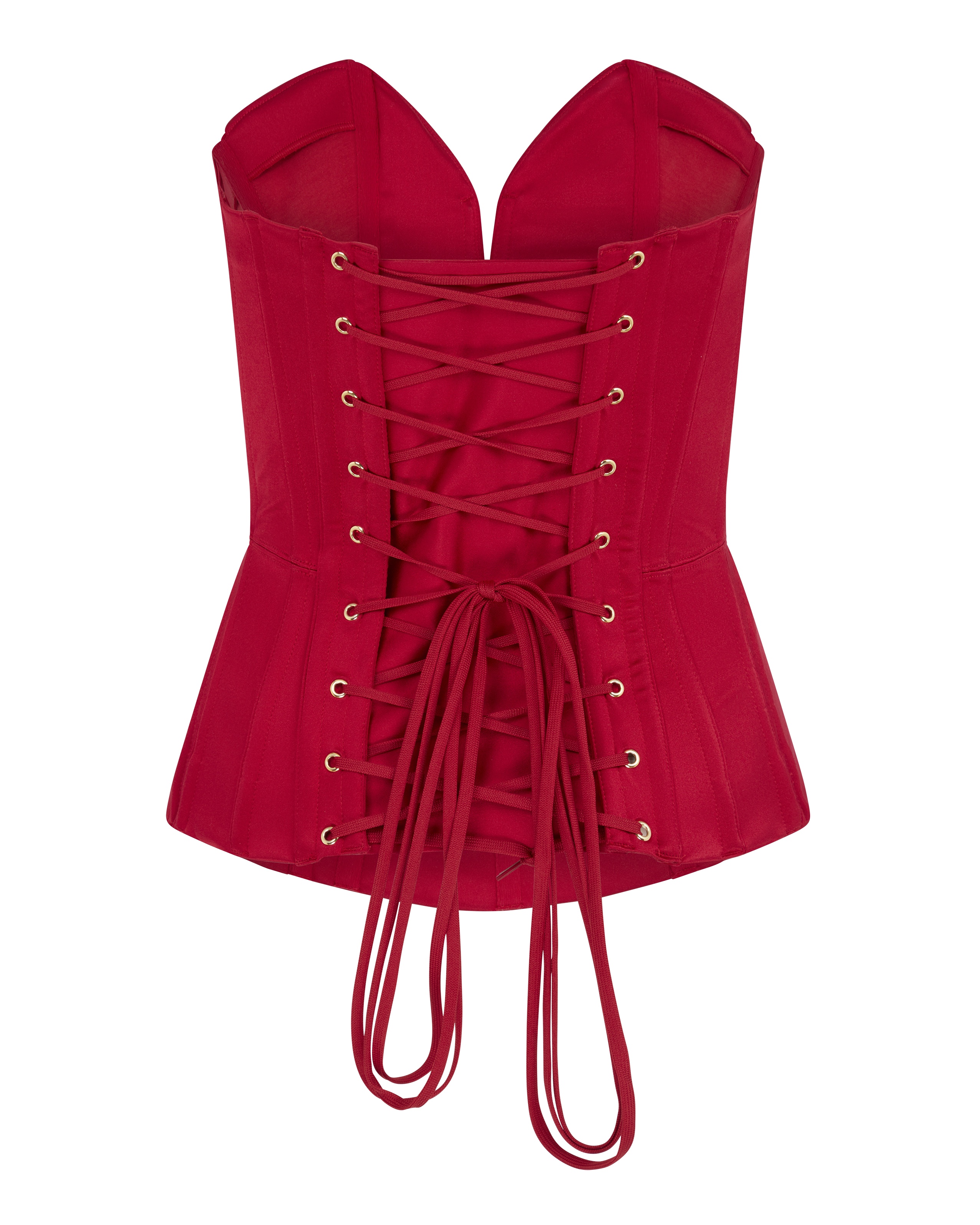 Корсет Gena Satin в насыщенном красном цвете с глубоким фигурным вырезом и вставками по бокам деликатно подчеркивает формы. Жесткие косточки и шнуровка на спинке обеспечивают идеальную посадку. Сочетайте его с юбкой Billi для эффектного вечернего образа.