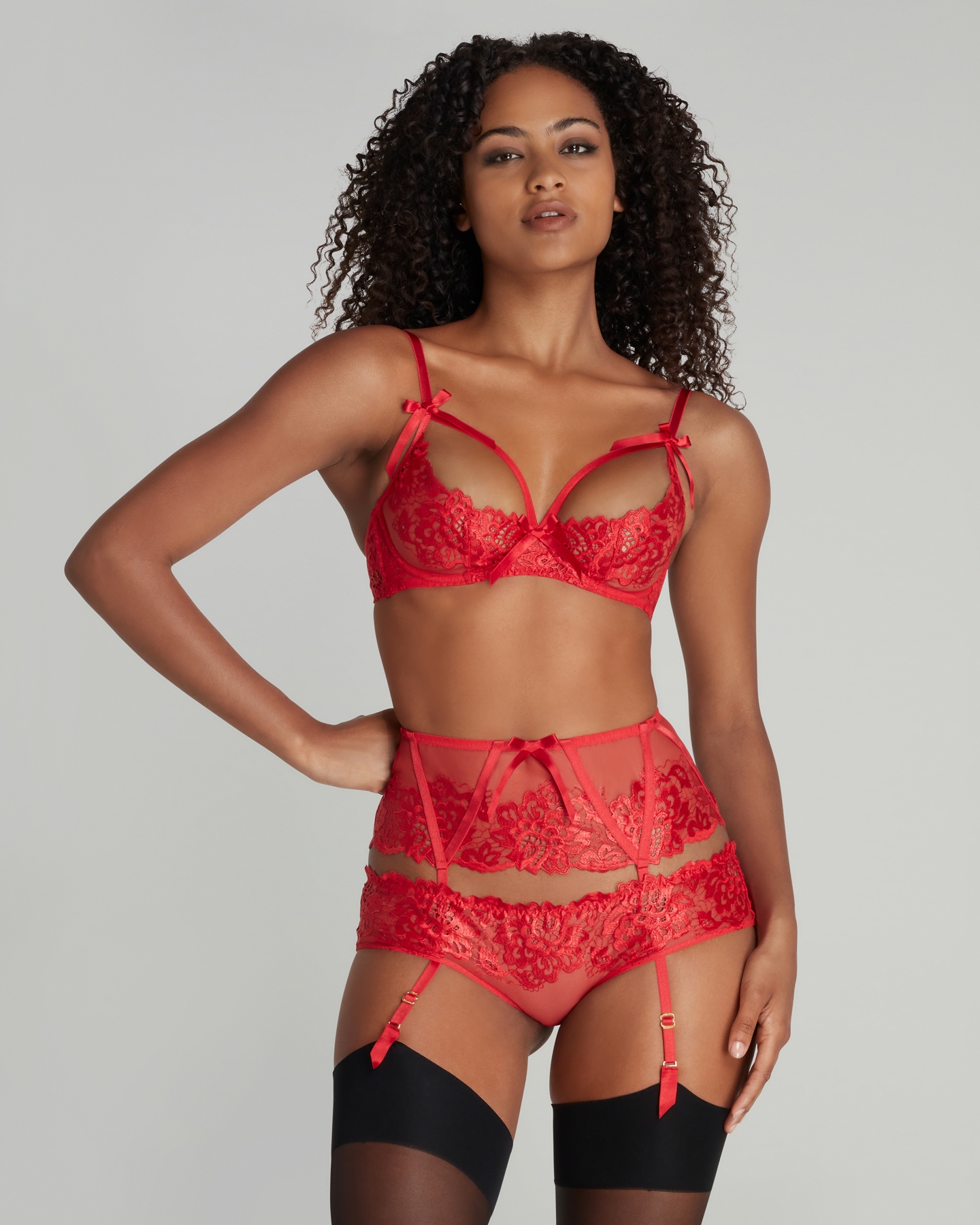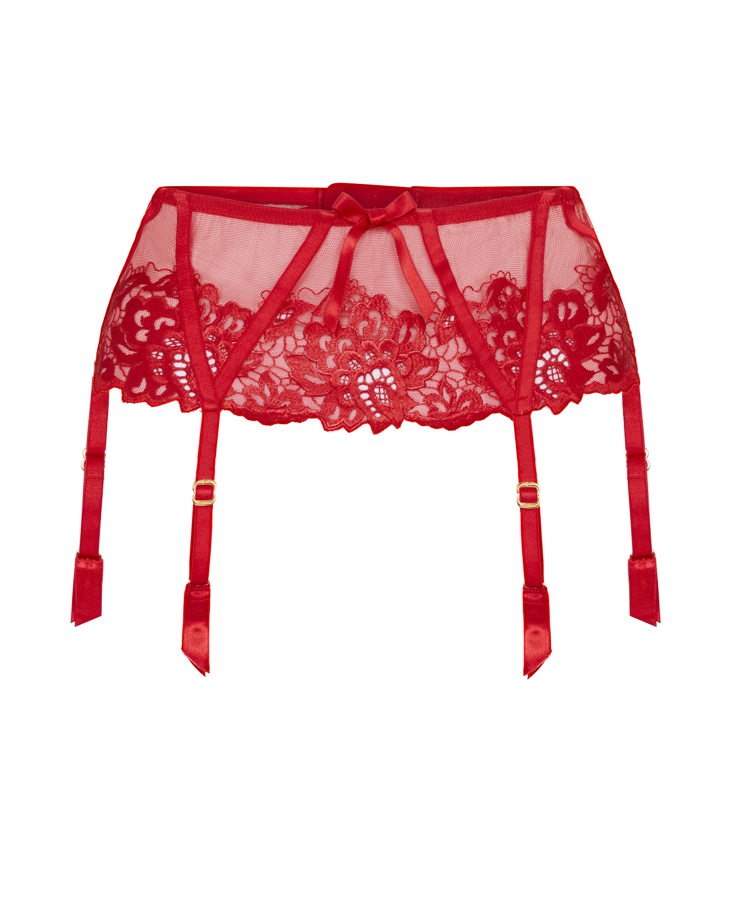 Красный пояс для чулок Cendrillon сочетает французскую вышивку с изящными лентами на талии. Комбинируйте с трусами и бюстгальтером из этой коллекции.