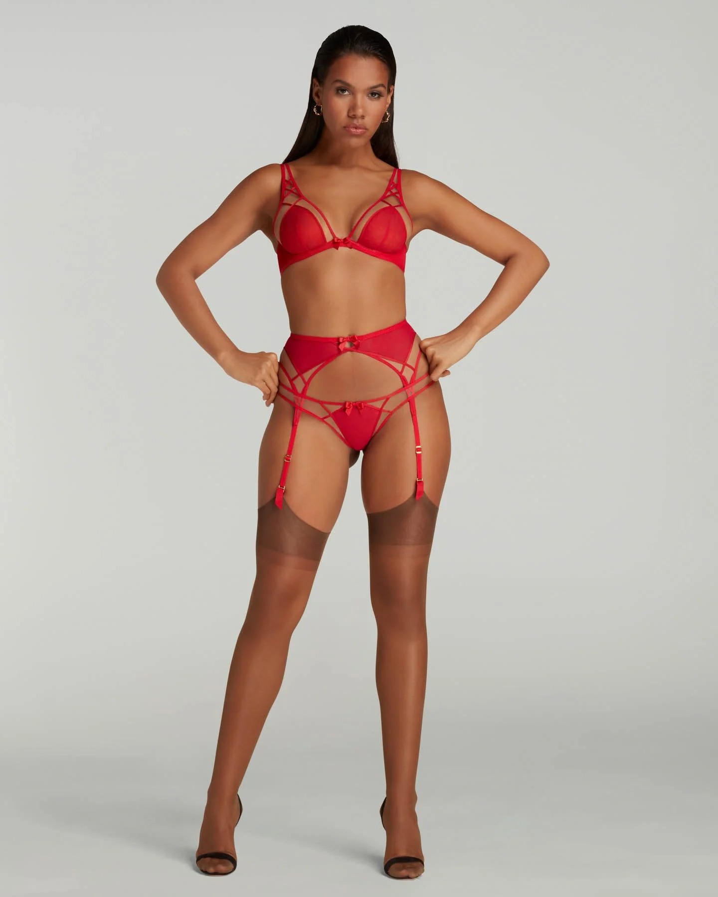 Пояс для чулок из коллекции Cherise выполнен из прозрачного тюля телесного цвета, создающего эффект обнаженной кожи. Украшена модель красными эластичными вставками и атласным бантиком на поясе. В комплекте также идут регулируемые ремешки. Носите с другими товарами из этой же коллекции для завершения образа.