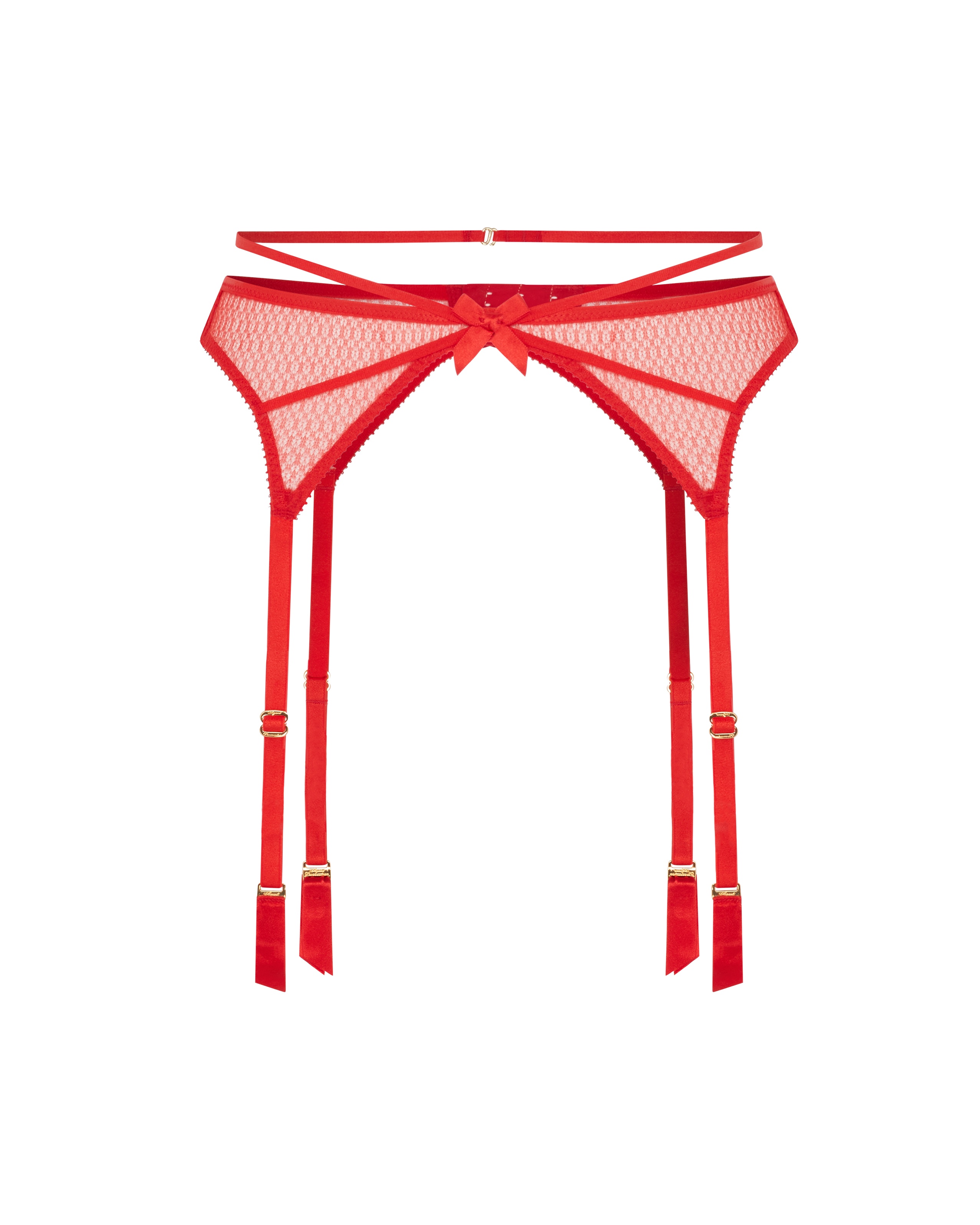 Пояс для чулок Nicki красного цвета: тату-тюль, X-образные атласные лямки и золотистая фурнитура. Скульптурный дизайн и регулируемые подвязки создают безупречную посадку. Полный комплект Nicki — это стихия, которой невозможно противостоять.