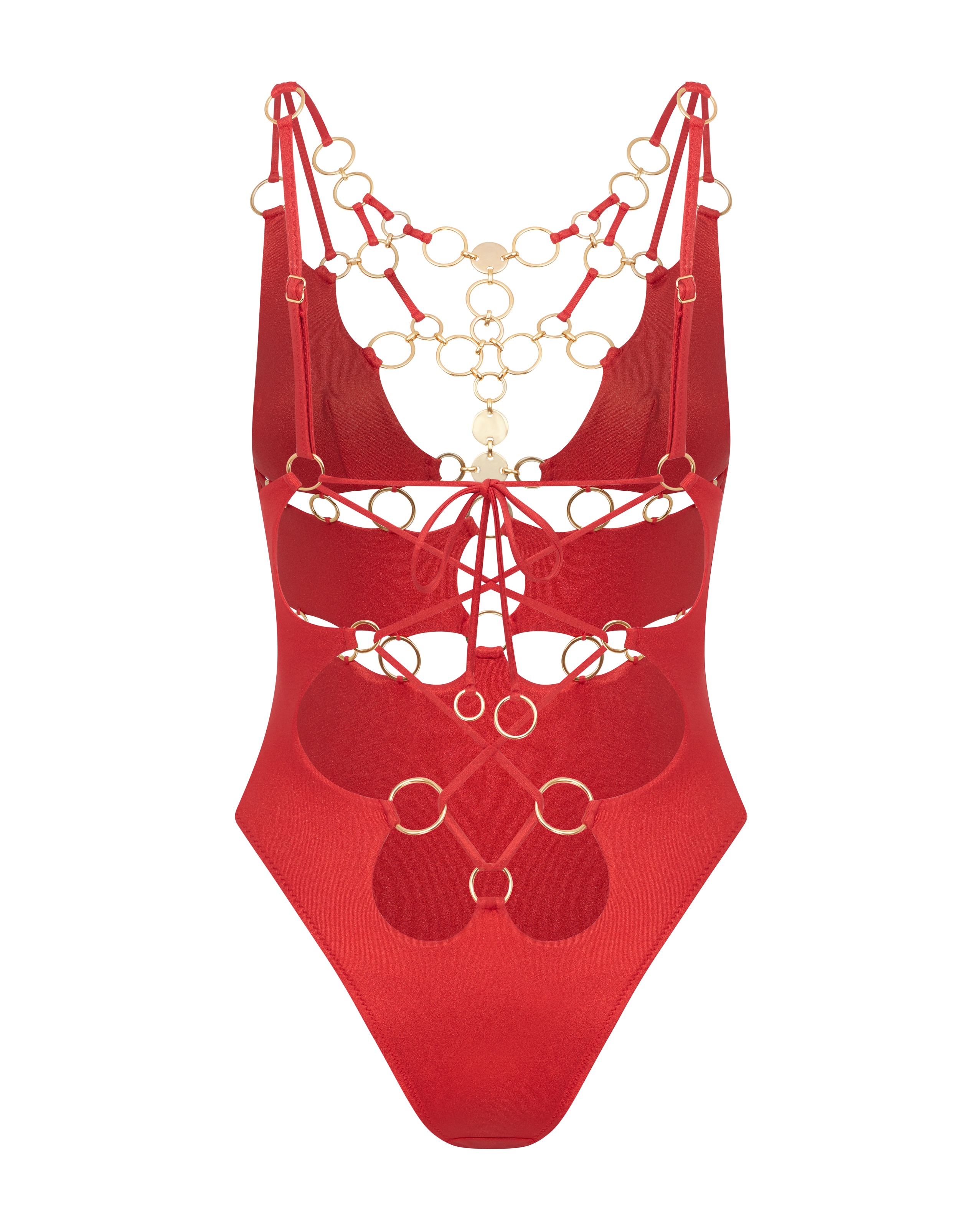 Слитный купальник Davine алого цвета приковывает внимание фирменной рок-н-ролльной фурнитурой, ремнями-харнес и бескомпромиссной дерзостью. Смелый, уверенный и стоящий того, чтобы оставить следы от загара.
