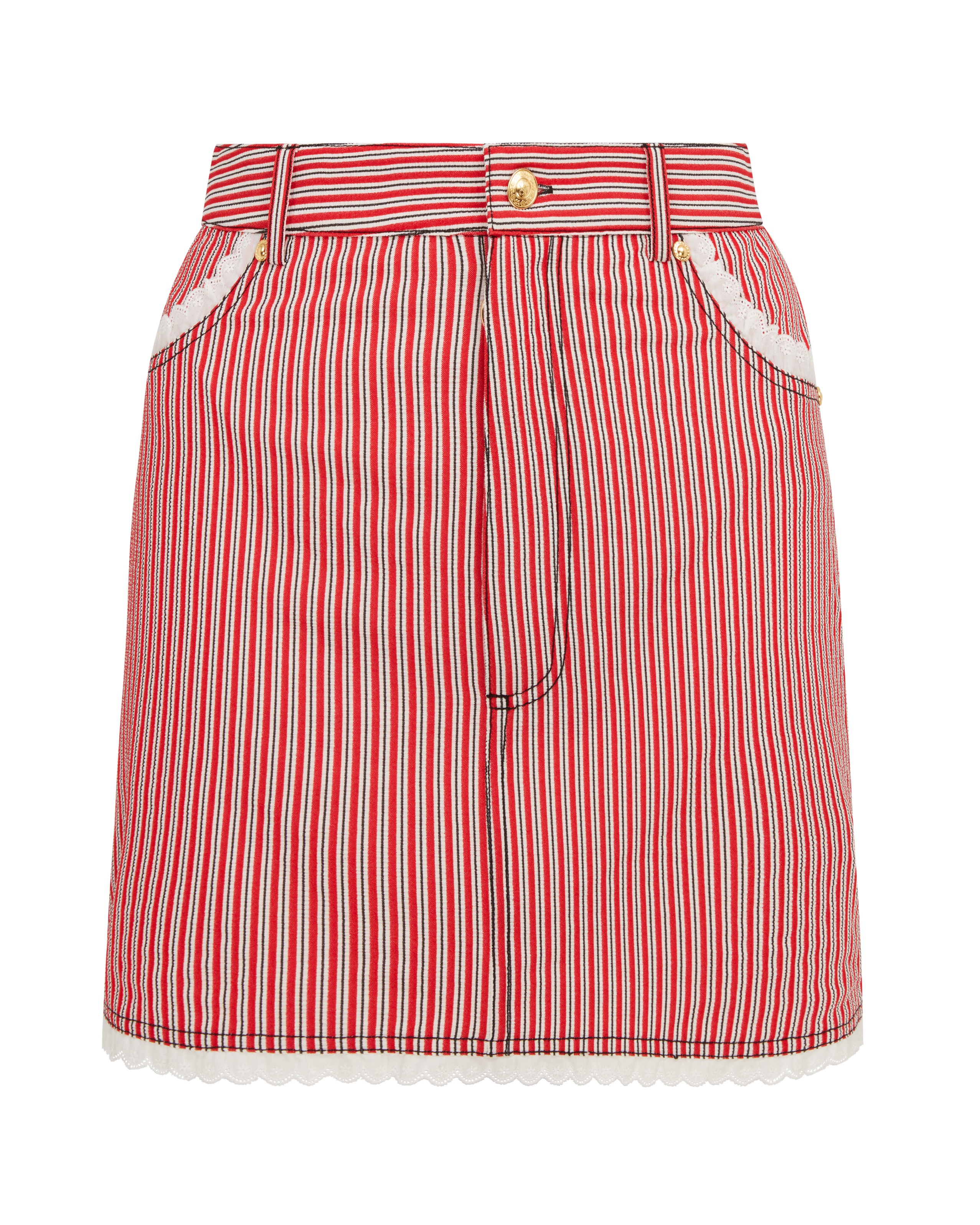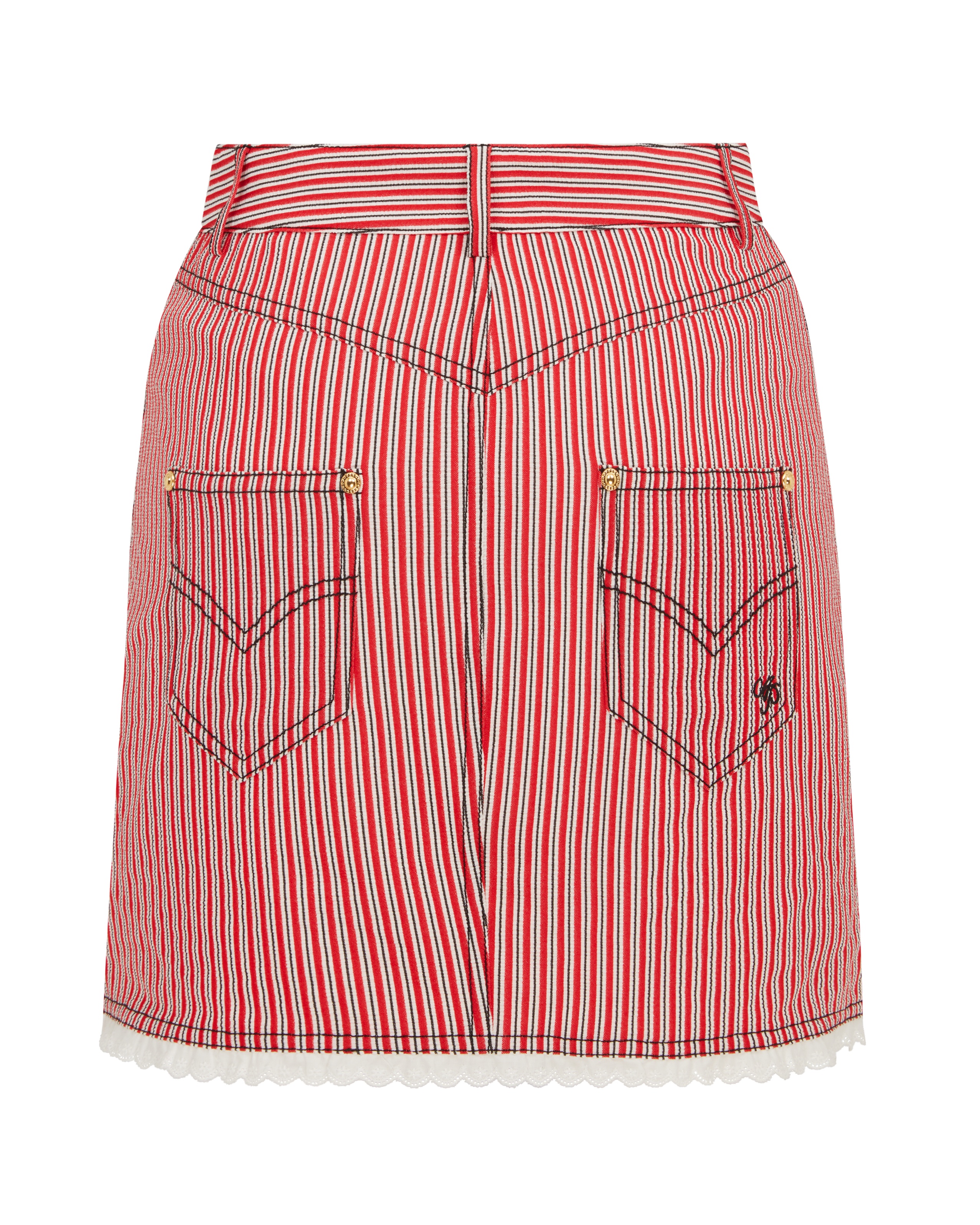 Юбка Milli в красно-белую полоску раскрывает в себе образ соседской девчонки с дерзкой стороной. Нежная оборка, силуэт юбки джинсового кроя и смелый дизайн в полоску соединяют милое и соблазнительное. В комплекте идет аксессуар — резинка Milli. Создайте свой сладкий и чувственный стиль с коллекцией Milli.